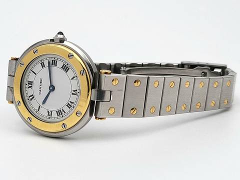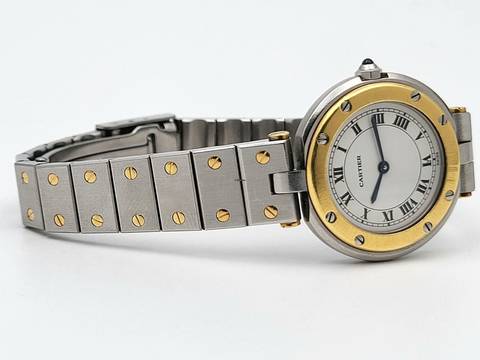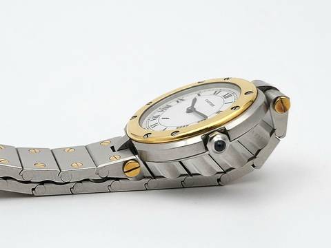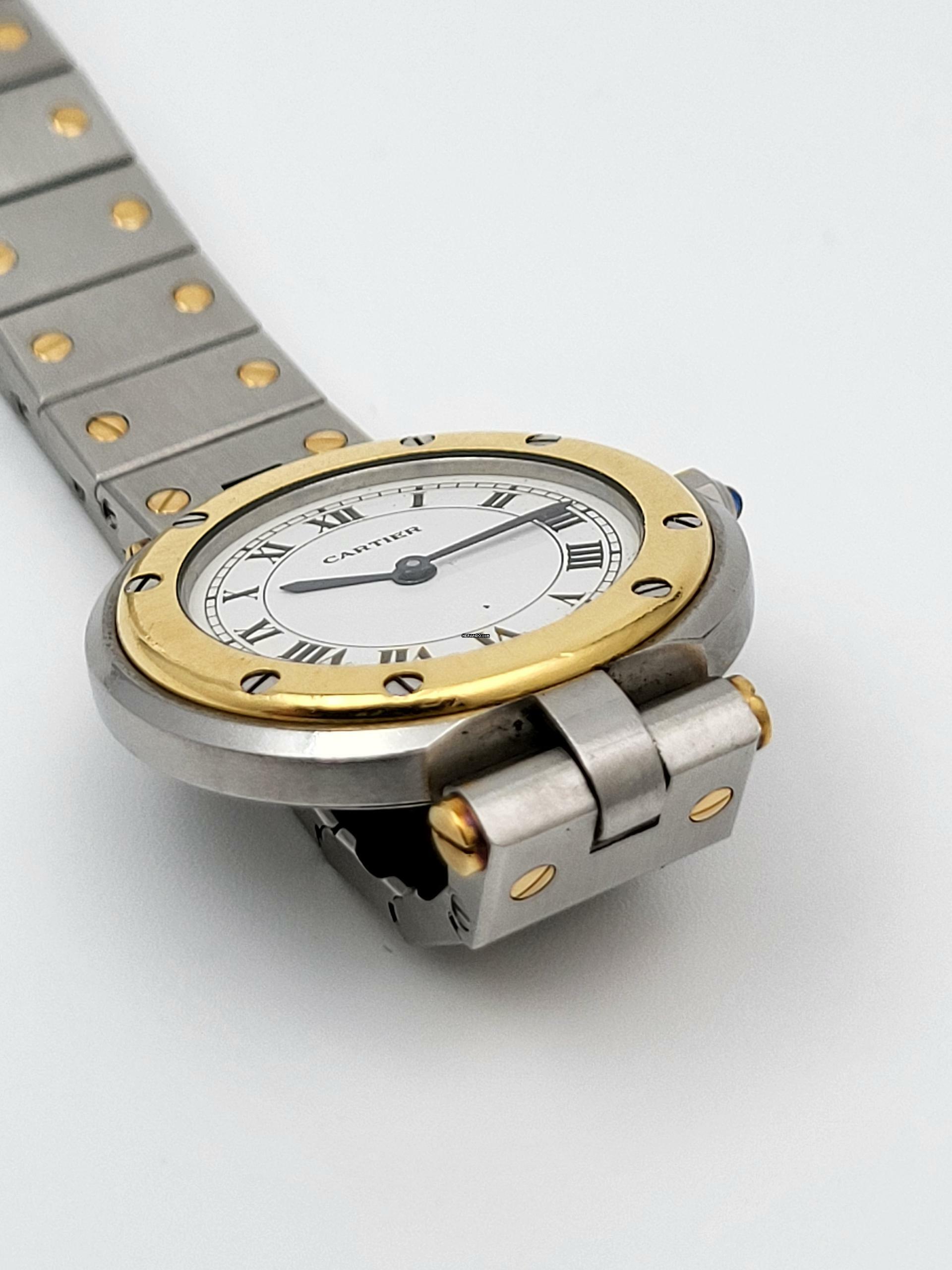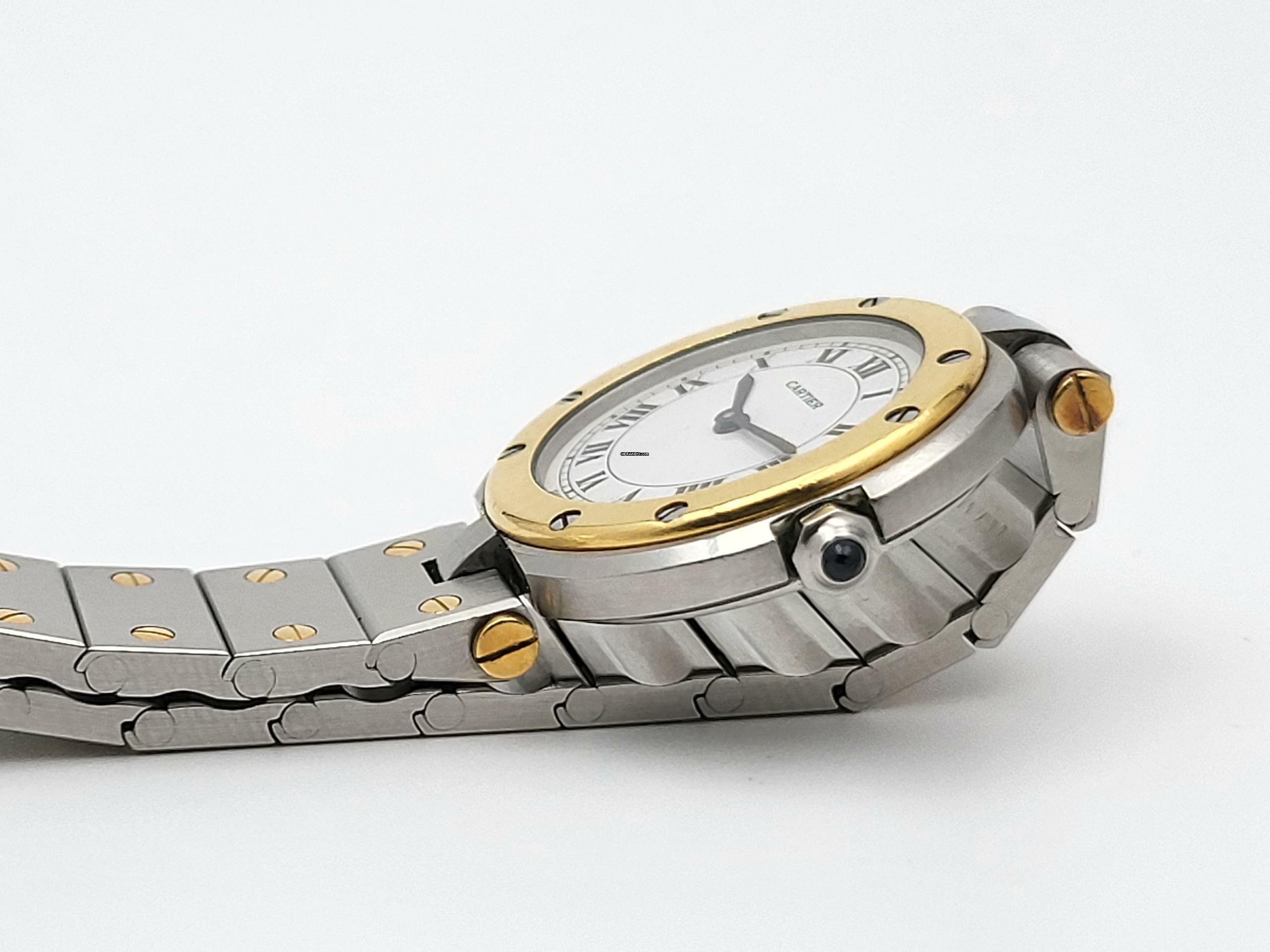 For sale is this nice Cartier Santos Ronde 27 mm. Steel and gold with a white dial and 18 kt. Gold bezel on a steel/gold-Bracelet.