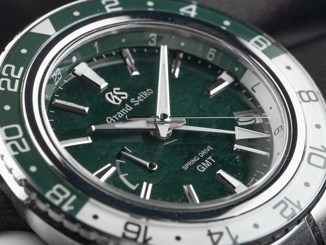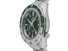 Grand Seiko Sport Kollektion Stahl Automatik Armband Stahl Gehäuse Edelstahl poliert und satiniert, Gehäusedurchmesser ohne Krone 44mm, Gehäusehöhe 14,6mm. Lünette Edelstahl mit grün / weißem Inlay und 24-Stunden Skala sowie Unterglas 24-Stunden Skala. Armband Edelstahl poliert und satiniert, Sicherheitsfaltschließe Edelstahl mit Hersteller-Logo. Zifferblatt grün mit aufgesetzten Edelstahl Indexen und Edelstahl Leuchtzeigern. Uhrwerk Automatik, Seiko Kaliber 9R66 mit 30 Edelsteinen, Gangreserve ca. 72 Stunden. Anzeige von Stunde, Minute und Sekunde über Zeiger aus der Mitte mit Sekundenstopp zur sekundengenauen Einstellung der Uhrzeit, Datumsanzeige mit Schnellverstellung bei 4 Uhr, GMT (zweite Zeitzone) ablesbar über weißen Zeiger aus der Mitte, Gangreserveanzeige zwischen 8 Uhr und 9 Uhr. Saphirglas kratzfest. Krone mit Hersteller-Logo bei 4 Uhr. Boden Edelstahl verschraubt und graviert. Gewicht der Uhr inklusive Armband 184g, Länge des Armbandes inklusive Gehäuse 200mm. Wasserdicht bis 20 ATM, Referenznummer: SBGE295G, ID: ST116097461125H-7000, Artikelnummer: 10000083098. Original Grand Seiko Box mit Umkarton und Garantie Papiere von 2025 sowie Beschreibung, Full Set. Superschnäppchen. Ungetragen. Lieferzeit sofort. Inklusive Uhrenpass mit einem Farbbild, der genauen Beschreibung sowie dem Wiederbeschaffungswert der Uhr über 7000,-€ und 1000 Tage Garantie ab Kaufdatum.