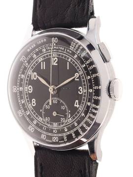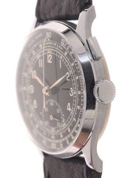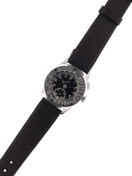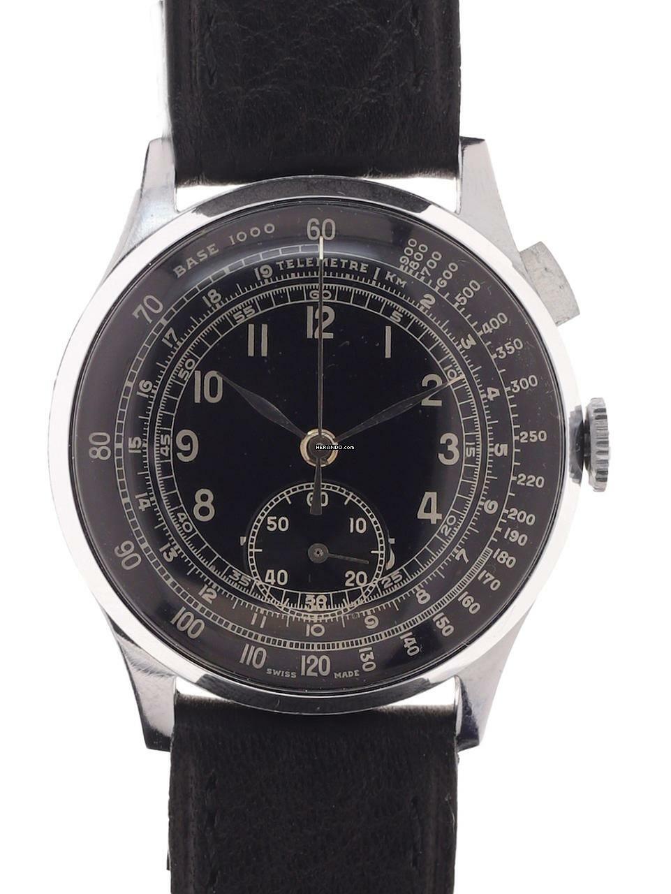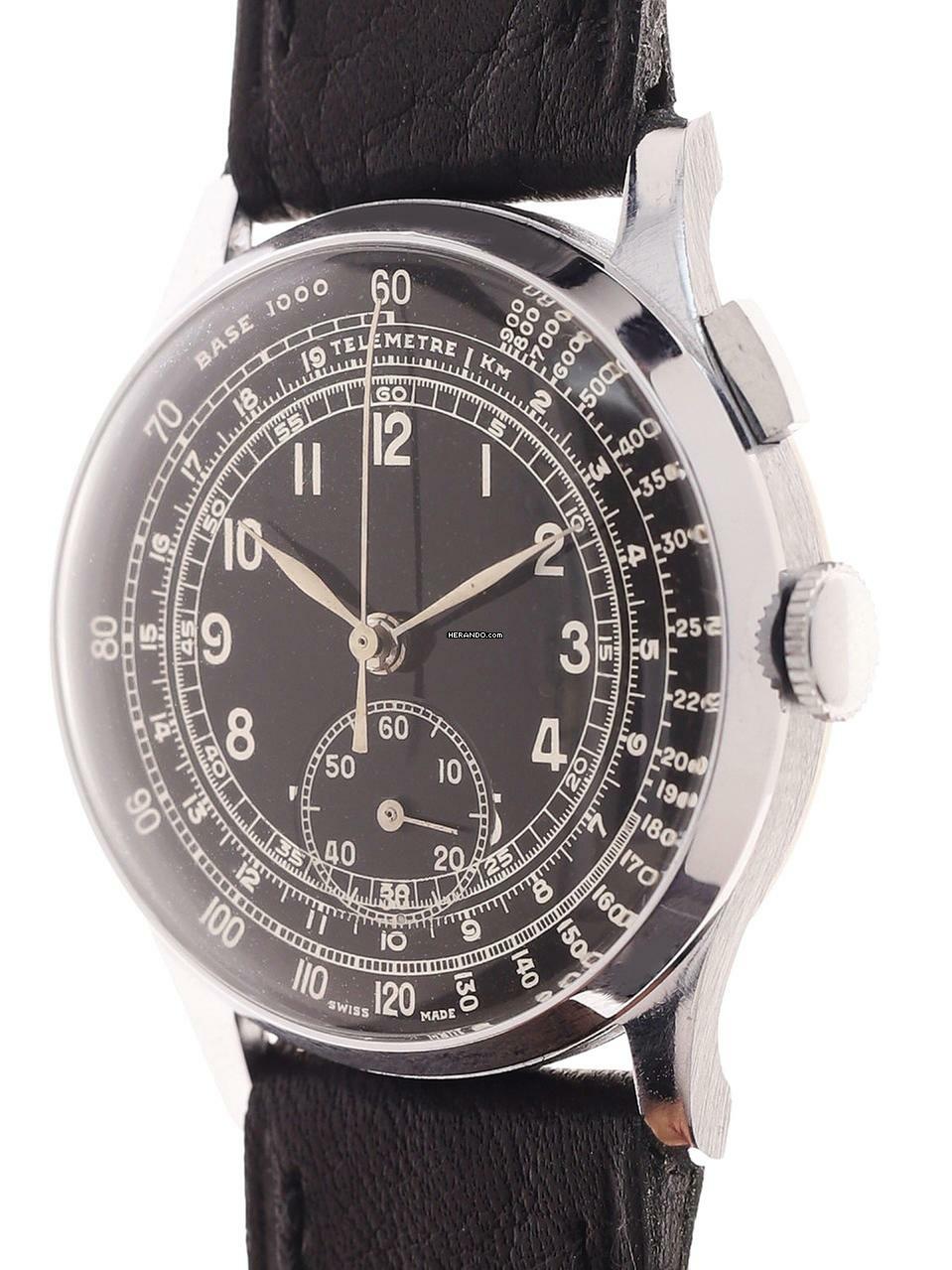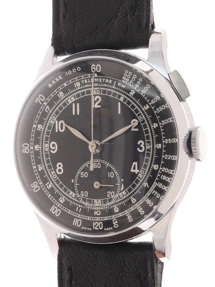 Dial: black original dial, silvered arabic numerals, outer Tachymeter – and Telemeter – Graduation, auxiliary Second, Center Chronograph Hand