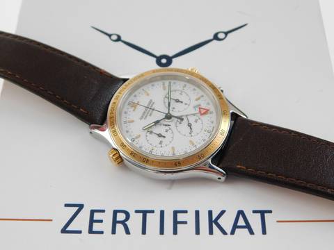 Jaeger-LeCoultre Heraion Reveil Herrenuhr Chronograph Alarm im Top Zustand 36mm Stahl / Gold