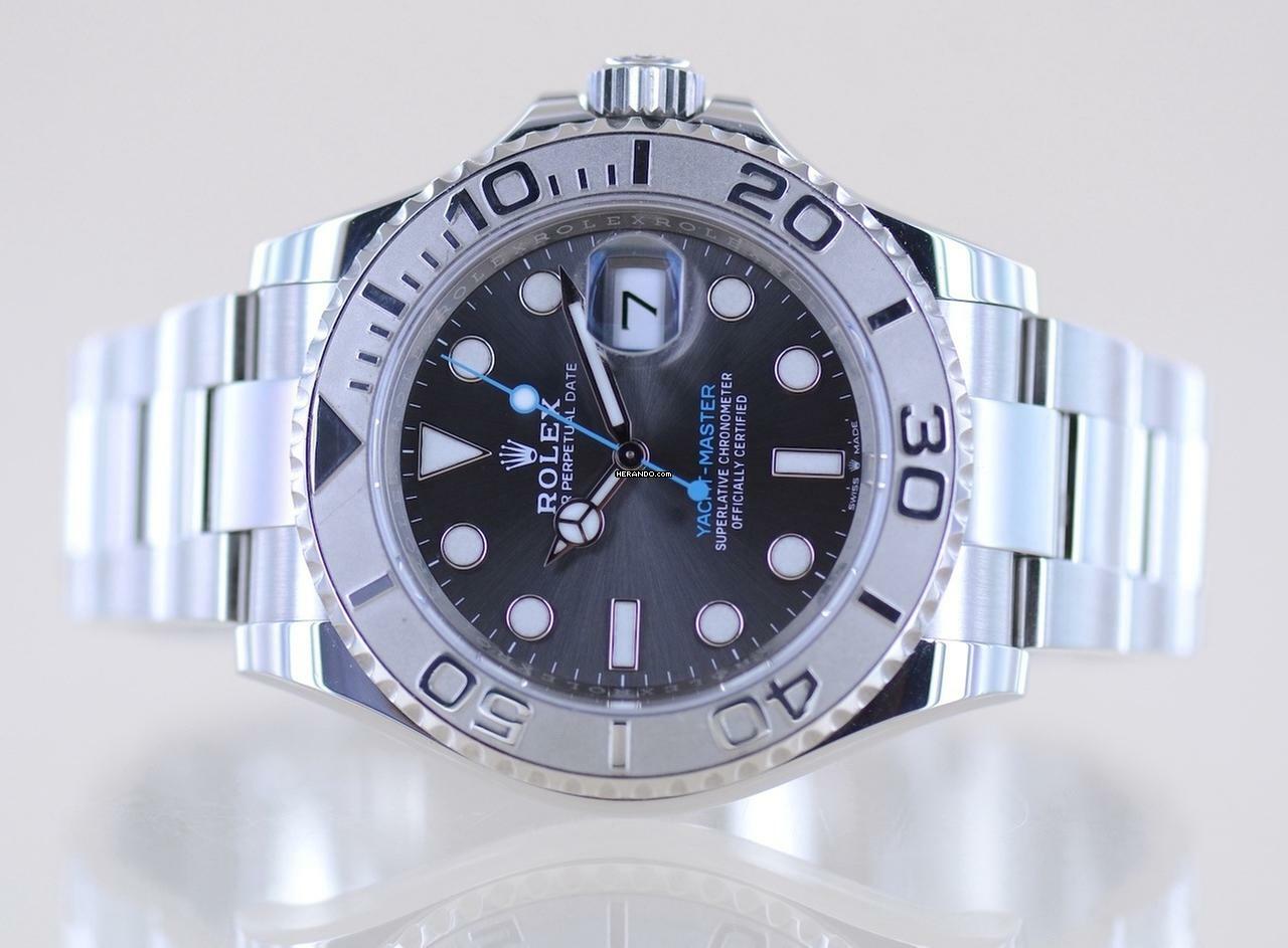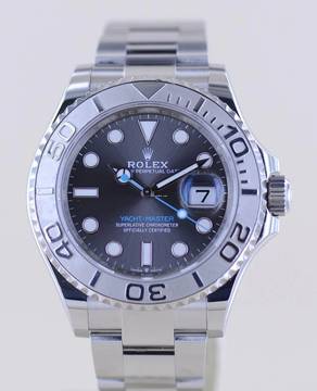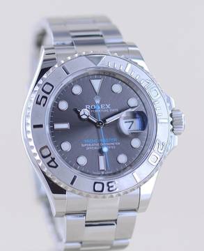 Sehr schöne Rolex Yachtmaster Stahl Platin mit der Referenz 126622. Die aus der Random-Serie stammende Uhr hat das Rhodium Super-Luminova-Zifferblatt sowie das massive Oysterband mit massiven Gehäuseantößen und der massiven Schließe. Einfach ein wunderbarer Klassiker mit großem Wertsteigerungspotenzial. Die Yachtmaster gehört in jede gute Uhrensammlung, macht jedoch auch im Alltag eine super Figur und hält bei entsprechender Pflege ein Leben lang. Das klare Zifferblatt ist fernab von jedem Trend zeitlos schön und wird es auch immer bleiben. Die Lünette ist aus massivem Platin und im Look absolut unverwechselbar. Das Maxidial ist auch Nachts super ablesbar.Ein schöner Nebeneffekt der Yachtmaster ist das Understatement. Kaum zu glauben bei einer Rolex. Das massive Band - wie bei der Daytona - und das eigene abgerundete Gehäuse mit dem hellen Platin passen nicht direkt in die landläufigen Rolexformen. Einfach genial luxuriös.