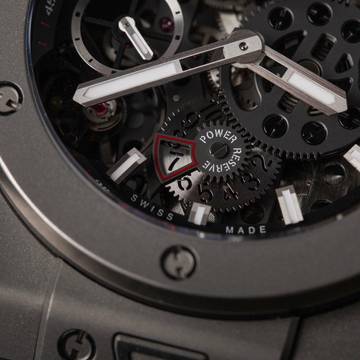 True to Hublot’s iconic “Art of Fusion” philosophy, the MECA-10 combines advanced materials with traditional craftsmanship. Its sapphire anti-reflective crystal and open-worked architecture offer a window into the intricate inner workings of the watch, celebrating innovation and transparency in design.
