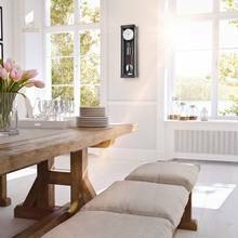 Die Erwin Sattler Classica P 70 M ist eine exklusive Präzisionspendeluhr, die Eleganz, technische Finesse und deutsche Uhrmacherkunst in vollendeter Form vereint. Mit ihrem 70 cm hohen Gehäuse aus schwarzem Schleiflack und feinen Metallintarsien ist sie ein dekoratives Meisterstück, das sich harmonisch in klassische wie moderne Interieurs integriert. Entspiegelt verglaste Mineralglasscheiben bieten freien Blick auf Uhrwerk, Pendel und Gewicht.