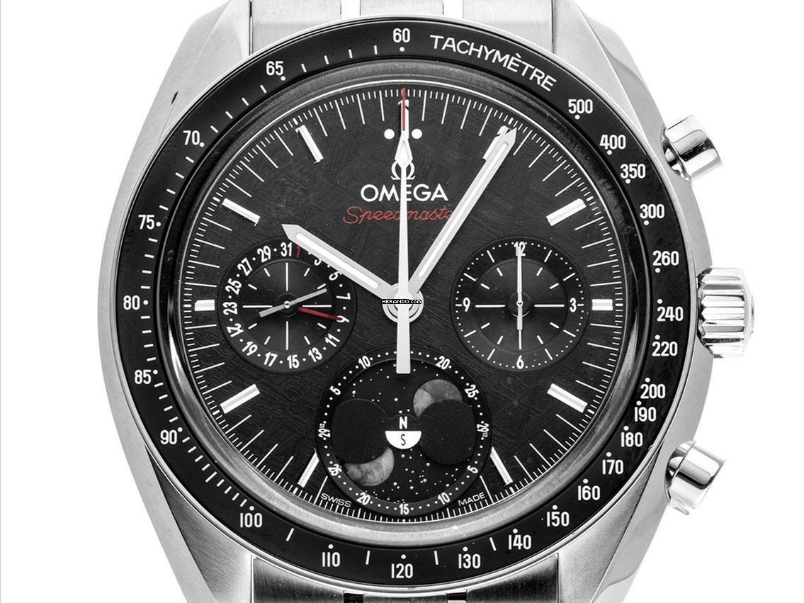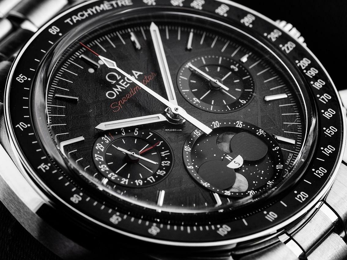 Omega Speedmaster Meteorit Stahl Handaufzug Chronograph Armband Stahl Gehäuse Edelstahl poliert und satiniert, Gehäusedurchmesser ohne Krone 43mm, Gehäusehöhe 13,6mm. Lünette Edelstahl mit schwarzem Keramik Inlay und Tachymeterskala. Armband Edelstahl poliert und satiniert, Sicherheitsfaltschließe Edelstahl mit Hersteller-Logo. Zifferblatt Meteorit mit schwarzen Hilfszifferblättern, aufgesetzten weißgoldenen Indexen und weißgoldenen Leuchtzeigern. Uhrwerk Handaufzug, Chronograph, Chronometer mit Zeugnis, Omega Manufakturkaliber 9914 mit 45 Edelsteinen und Co-Axial Hemmung, Gangreserve ca. 60 Stunden. Anzeige von Stunde und Minute über Zeiger aus der Mitte, kleine Sekunde mit Sekundenstopp zur sekundengenauen Einstellung der Uhrzeit bei 9 Uhr, Datumsanzeige mit Schnellverstellung über Zeiger bei 9 Uhr, Mondphasenanzeige bei 6 Uhr. Saphirglas gewölbt und kratzfest, doppelseitig entspiegelt. Krone im Gehäuse eingelassen mit Hersteller-Logo. Boden Edelstahl verschraubt und graviert mit Saphirglas Sichtfenster. Gewicht der Uhr inklusive Armband 153g, Länge des Armbandes inklusive Gehäuse 200mm. Wasserdicht bis 5 ATM. Referenznummer: 304.30.43.52.01.001, ID: ST5806263661125H-18700, Artikelnummer: 10000083215. Original Omega Box mit Umkarton und Garantie Papiere von November 2025 sowie Beschreibung, Full Set. Ungetragen. Lieferzeit sofort. Inklusive Uhrenpass mit einem Farbbild, der genauen Beschreibung sowie dem Wiederbeschaffungswert der Uhr über 18700,-€ und 1000 Tage Garantie ab Kaufdatum.