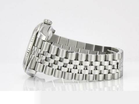 Diese einmalig-schöne Rolex ist aus Edelstahl gefertigt und mit einer Lünette aus feinstem Weissgold 750 veredelt wordenFantastisches schwarzes Jubilé-Zifferblatt mit 10 funklenden Diamanten besetzt, original von Rolex