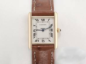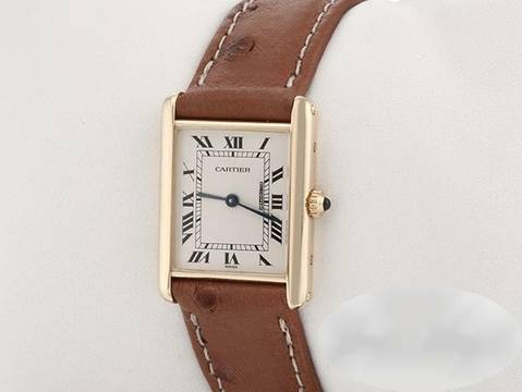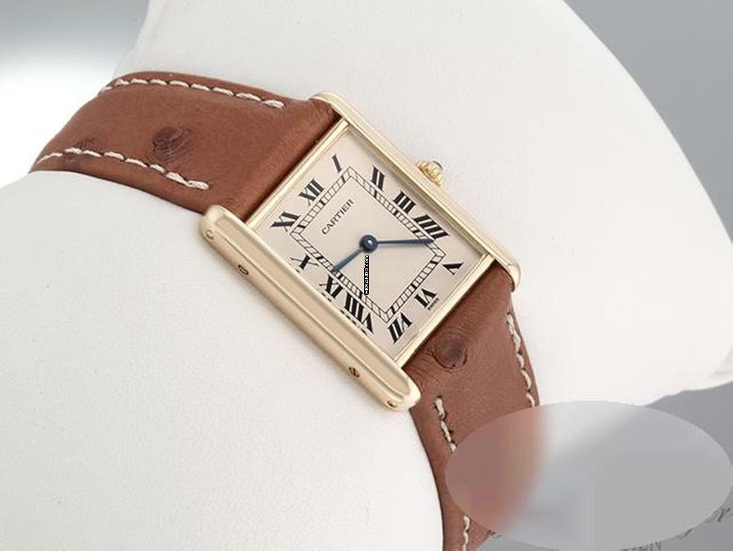 Diese faszinierende Cartier aus feinstem Gelbgold 750 gefertigtFantastisches helles Zifferblatt mit großen schwarzen cartiertypischen römischen Zahlen