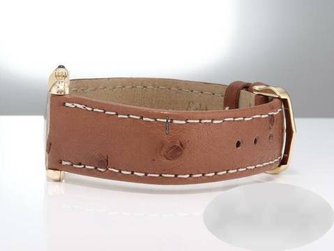 Elegantes neues braunes Straußenleder-Armband mit einer Cartier-Schließe, PlaqueG