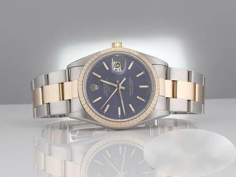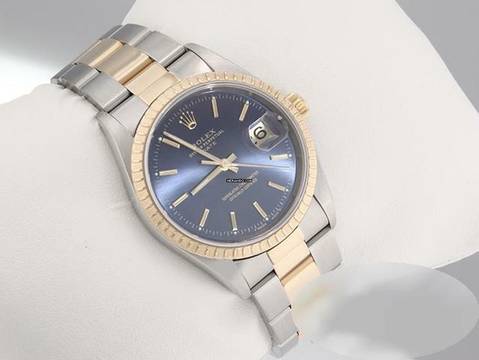 Rolex Oyster Perpetual Date 34mm 15223 Stahl Gelbgold 750 Automatik Medium 18kt Yellow Gold Edelstahl Stainless Steel Oyster-band Chronometer Blue Dial