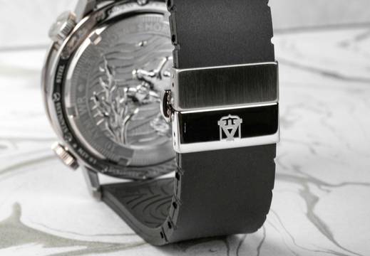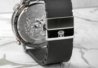 Edelstahl mit geprägtem Massivstahlboden, drehbare Innenlünette in PVD schwarz, einstellbar über Krone auf 2h