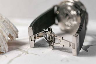 Schwarzes Kautschuckband mit gravierter Edelstahlfaltschließe