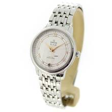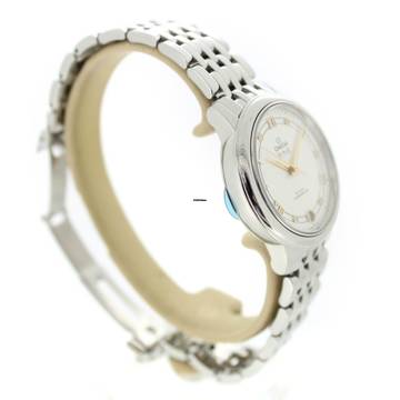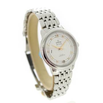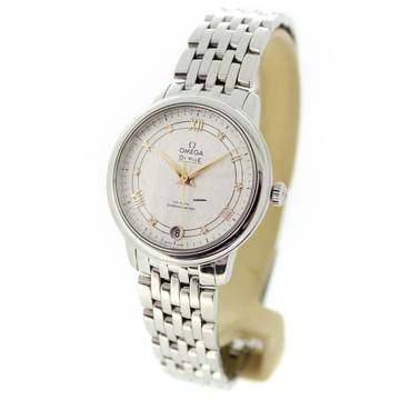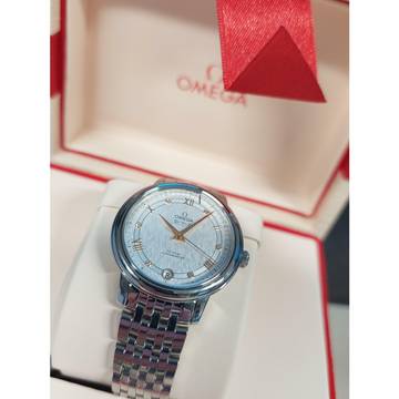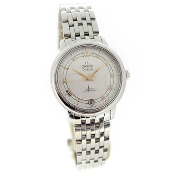 This Omega watch features a 32.7mm steel case. The watch features a silver dial. The watch is equipped with a steel strap.