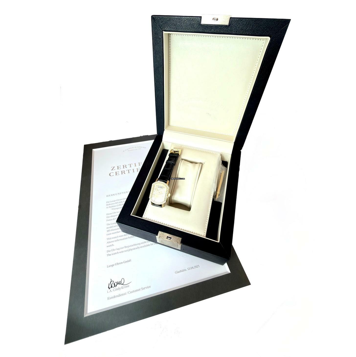 Die Uhr wird mit der A. Lange & Söhne Box und A. Lange & Söhne Stammbuchauszug geliefert.