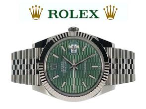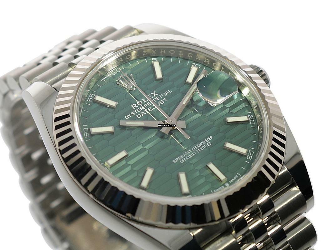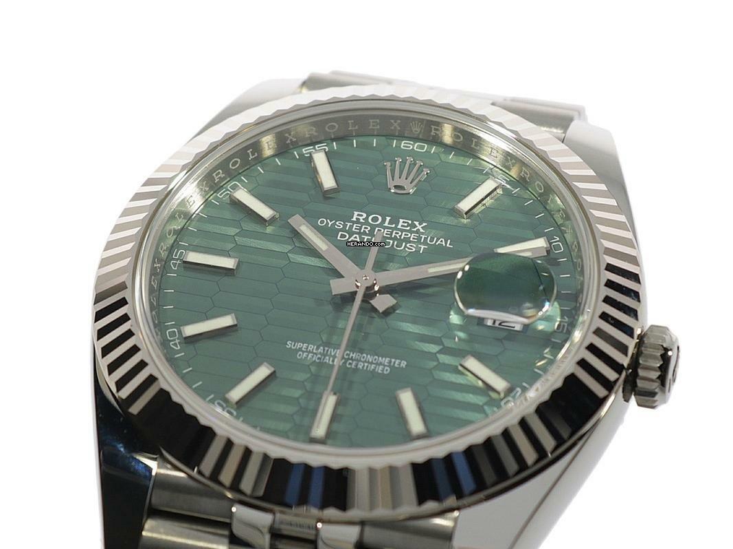 Die Rolex Datejust 41 Ref. 126334 mit ihrem markanten grünen Fluted-Motif-Zifferblatt ist eine sehr begehrte und mittlerweile seltene Variante. Sie kombiniert ein 41 mm Oystersteel-Gehäuse mit einer eleganten weißen Rolesor-Lünette und einem stilvollen Jubilee-Armband. Mit ihrer Kombination aus klassischer Datejust-Form, auffälligem Muster-Zifferblatt und wertbeständiger Verarbeitung ist diese Version ein echter Sammlerstück-Kandidat – gerade weil das grüne Motiv-Zifferblatt inzwischen eingestellt wurde.