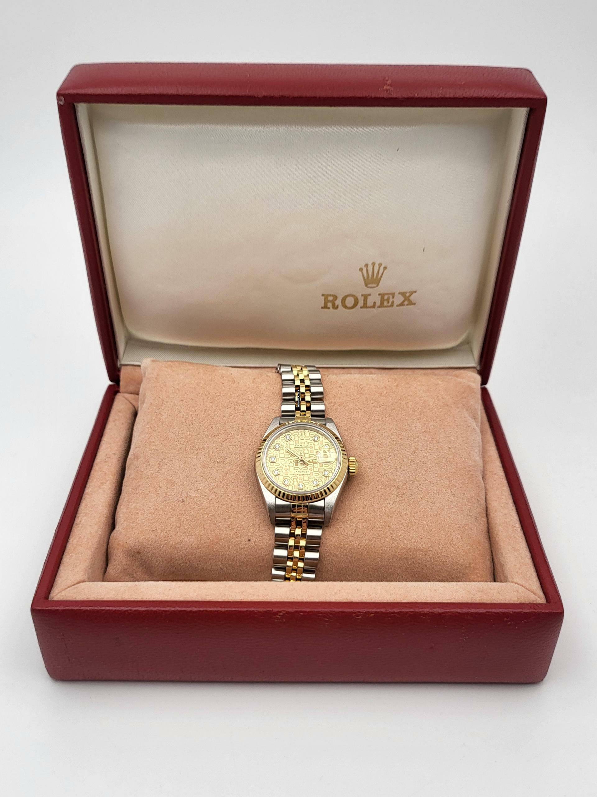 For sale is this Rolex Lady Datejust 26 mm. steel and gold with a Original Jubilee Champagner diamond dial and Steelgold-Bracelet.