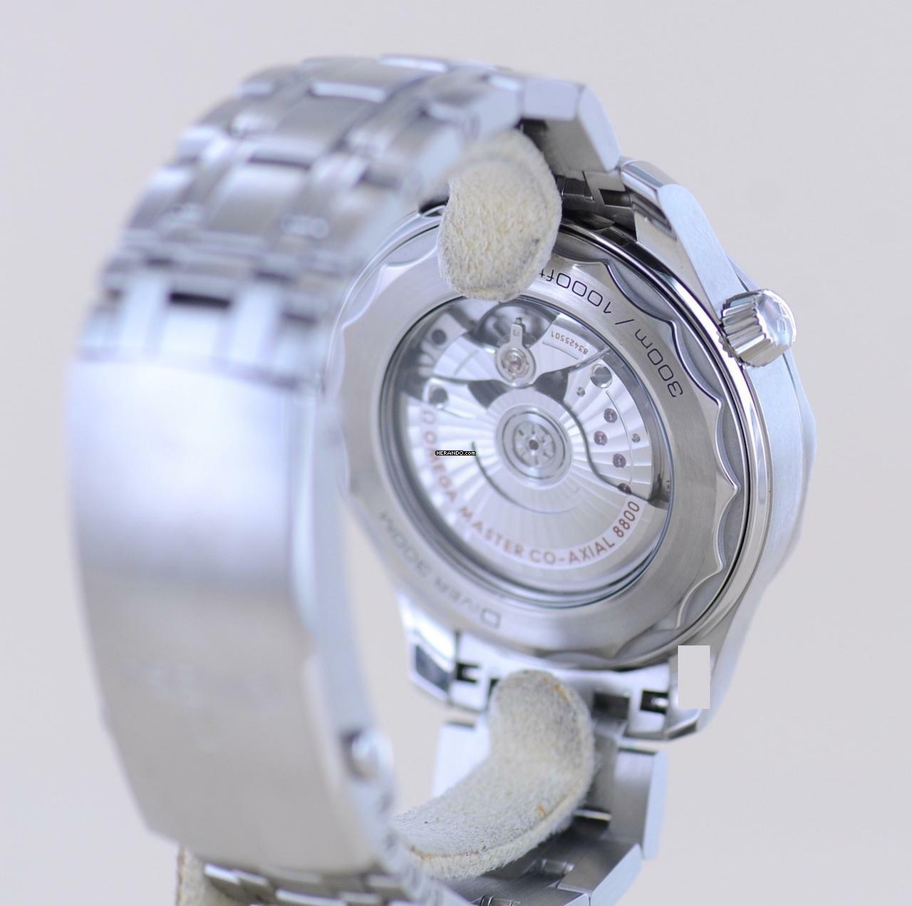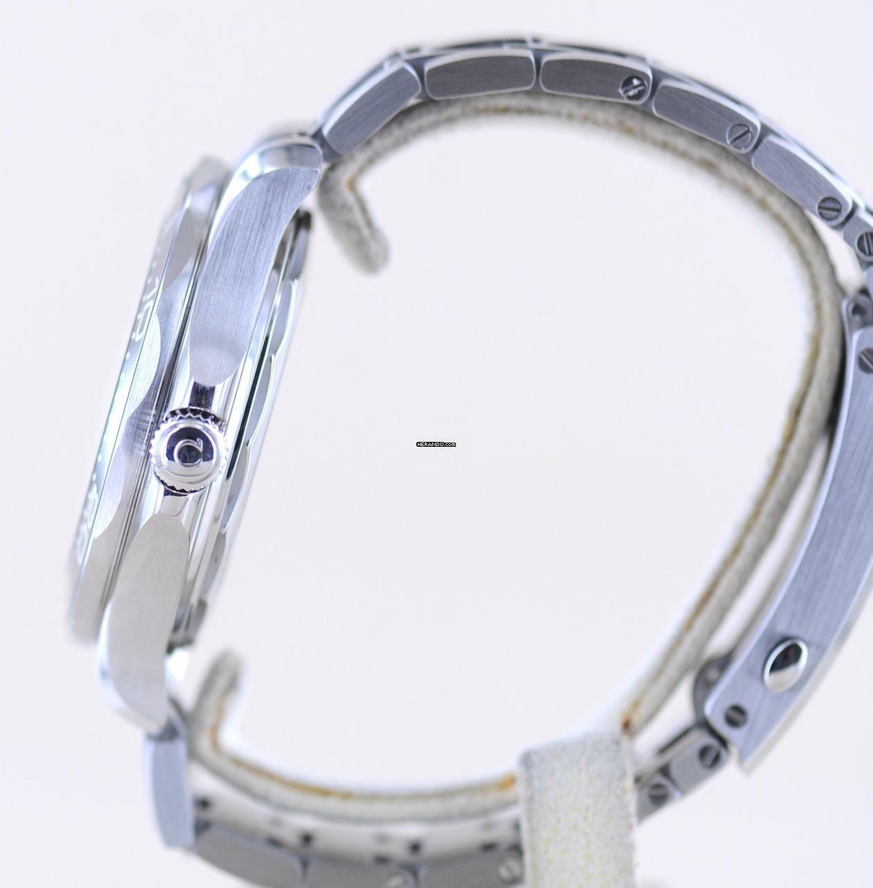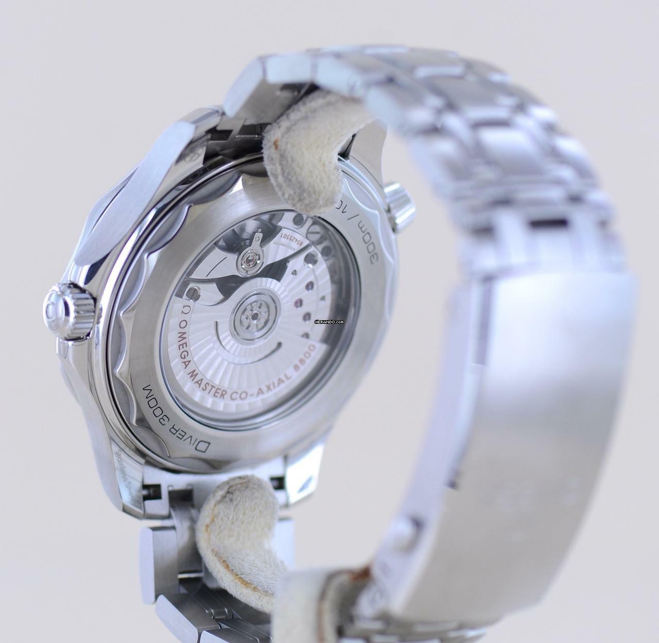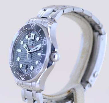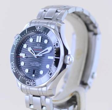 Diese Omega fällt durch ihr zeitloses schwarzes Blatt auf, welches einen wunderbaren Glanz hat. Absolut geniales Wellen-Finish und schöner als ein Meer in der Sonne. Die Formsprache der Uhr vermittelt maritimes professionelles Flair. Und klar - zum Tauchen und jegliche Art von Wassersport ist dieser Zeitmesser wie gemacht, denn bis zu 300 Meter tief hält sie dem Wasserdruck stand.Nicht nur im Taucheranzug macht der Träger mit dieser Seamaster eine gute Figur. Mit gut 42mm ohne Krone trägt sich die Uhr sehr präsent und sportlich am Handgelenk - natürlich auch an Land. Die Seamaster Serie ist bekannt aus den "James Bond"-Filmen. Das verbaute Seamaster Band ist eines der besten Stahlbänder auf dem Markt. Es ist extrem robust und zuverlässig.