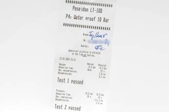 - Wasserdichtigkeit*: ja. Das Prüfprotokoll mit Prüfdruckangabe liegt bei.