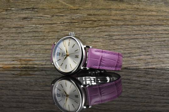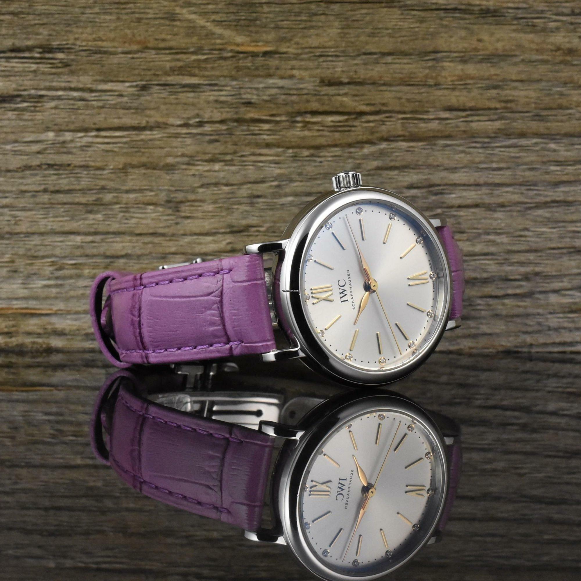 Armband: neues Fliederfarbenes + braunes Lederarmband (nicht von IWC) & Stahl IWC Dornschließe