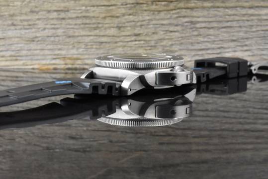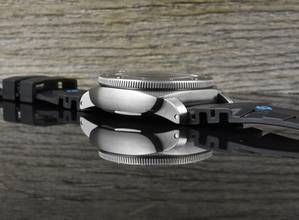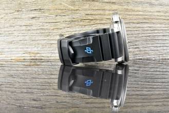 Armband: blaues + schwarzes Kautschuk Armband an einer Titan Dornschließe mit feinen Tragespuren