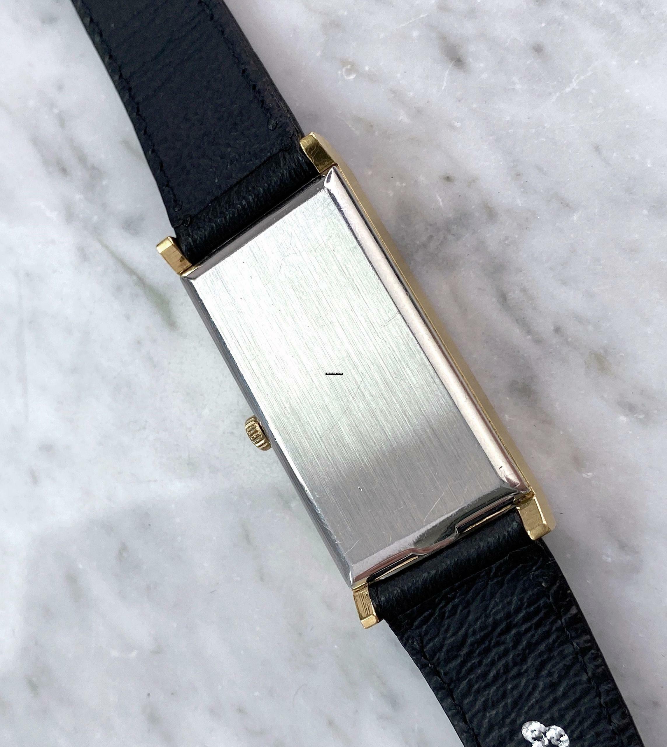 21 x 46mm. Die Uhr ist sehr lange. Sie trägt sich wie eine 37/38mm Jumbo Uhr. In Zeiten wo die Cartier Tank beliebt ist, ist das Modell als "Tank Uhr" ein Schnäppchen.