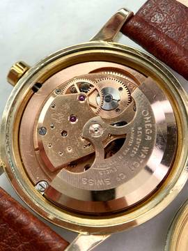 - Genuine Omega Glas displaying a tiny Omega Logo in its centre