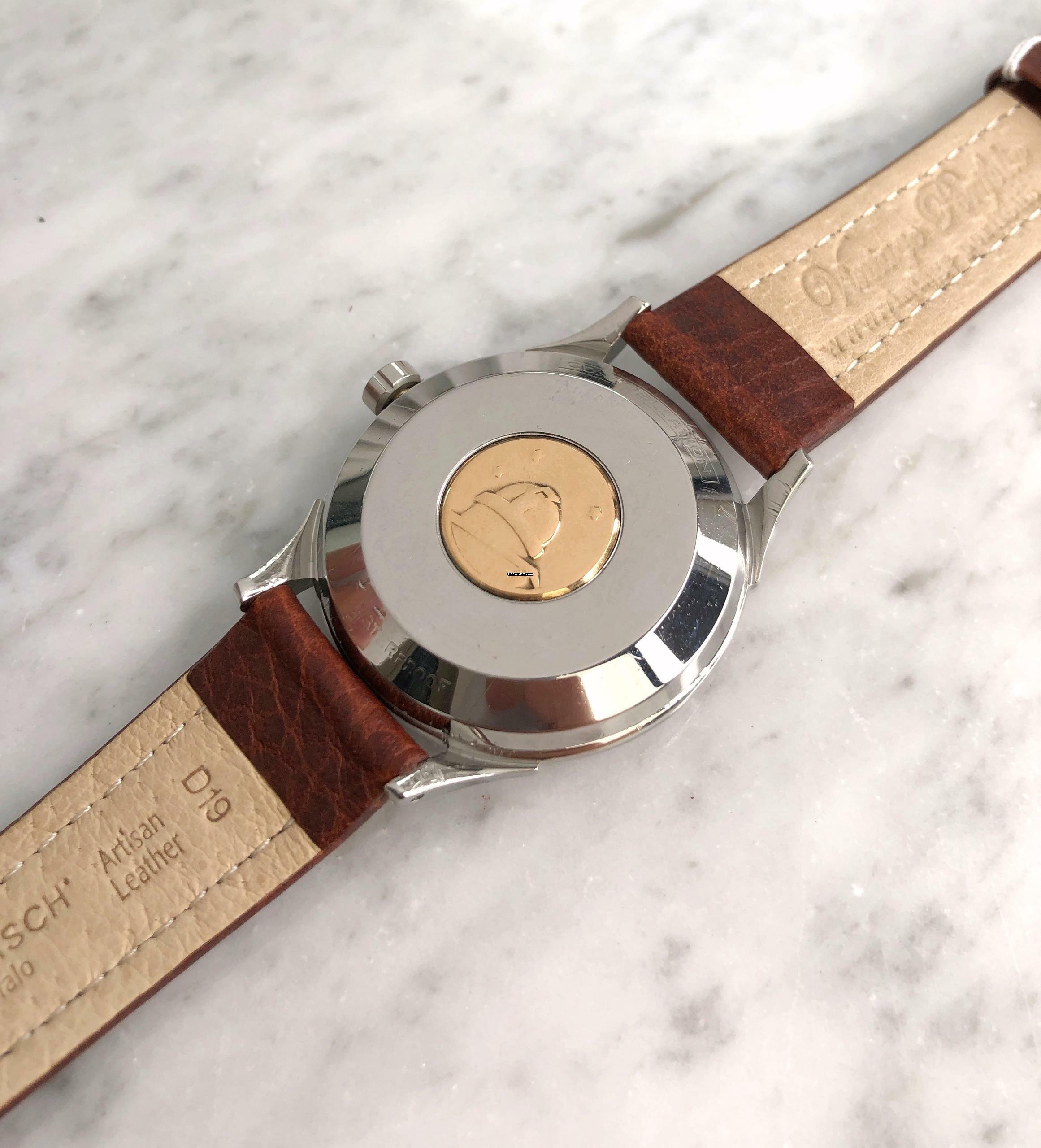 - The still FACTORY ORIGINAL (non-refurbished) dial has some patina matching its age.