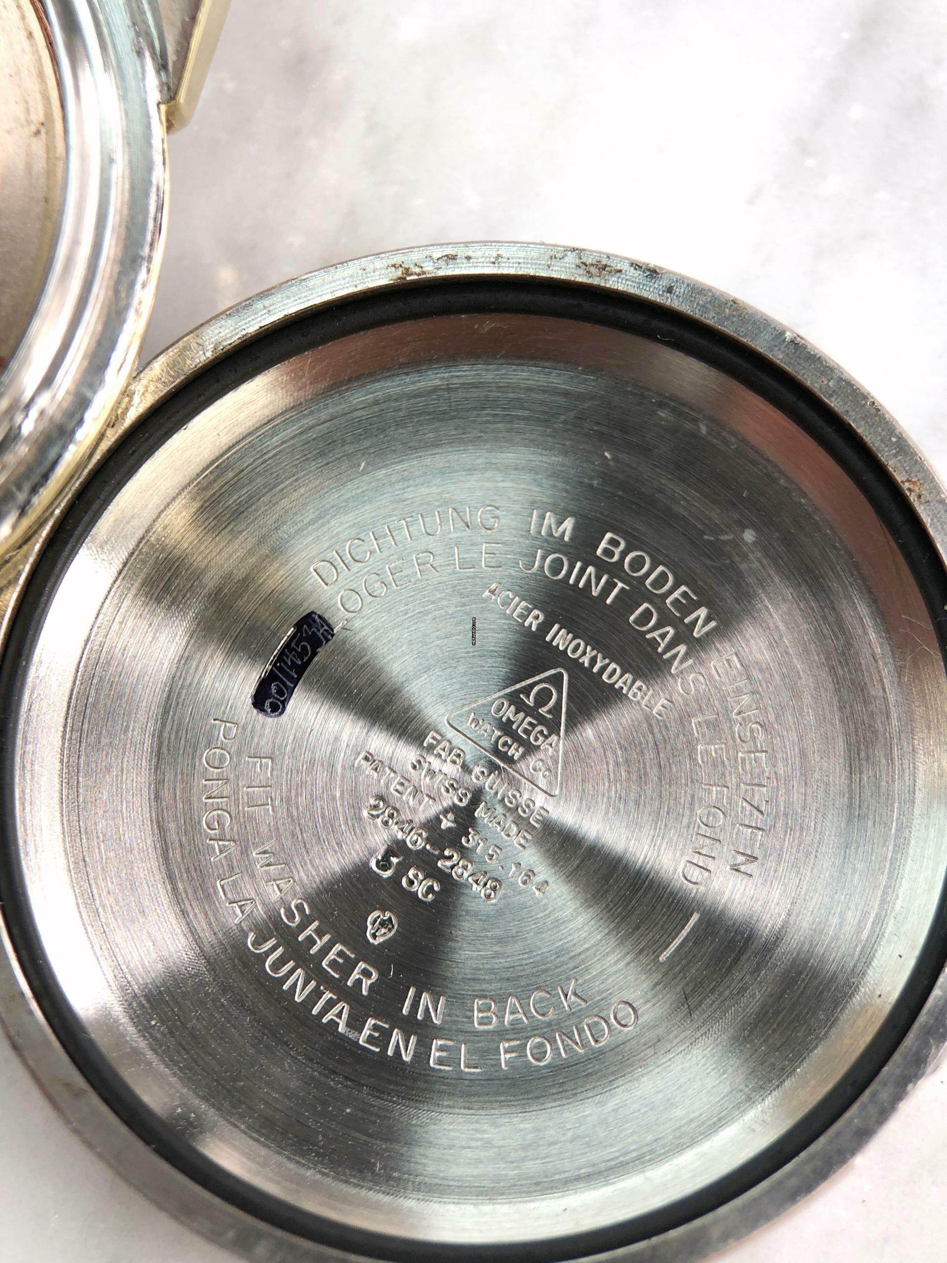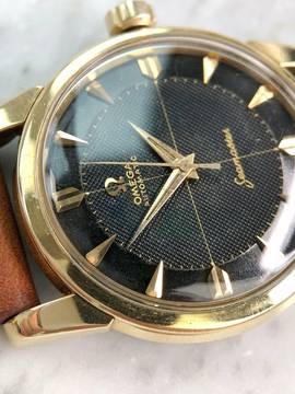 - Genuine Omega Glas displaying a tiny Omega Logo in its centre
