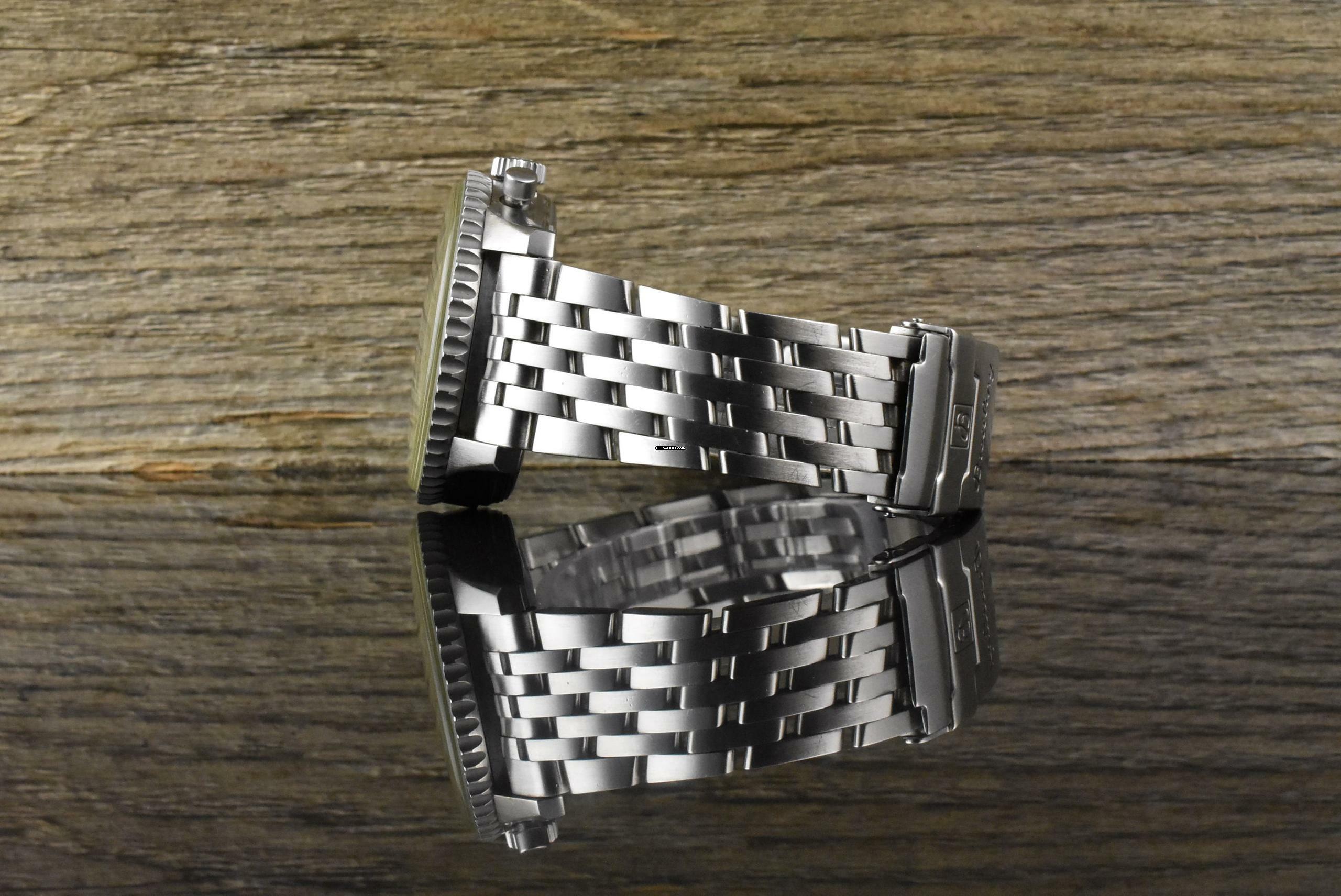 Lieferumfang: Breitling Box mit Überkarton & Garantie Zertifikat aus dem Jahr 2003, Chronometer Zertifikat, Gebrauchsanleitung, Rechenschieber, Anleitung Rechenschieber und diverse Breitling Booklets
