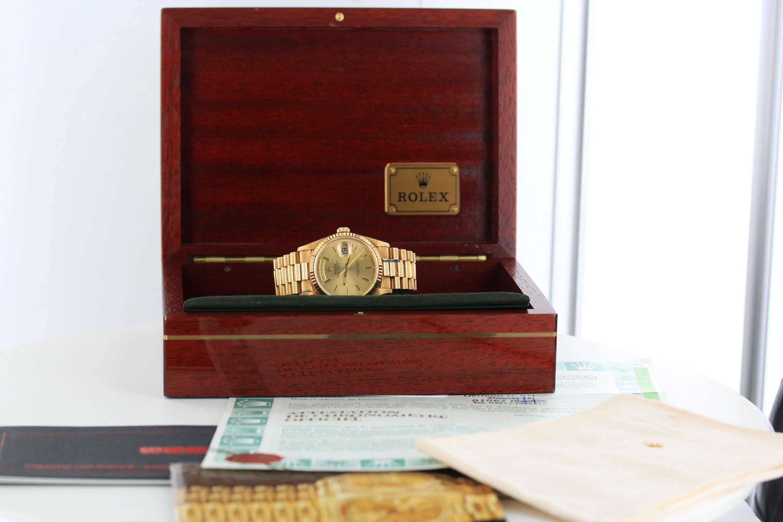 Wir bieten Ihnen hier eine elegante Rolex Day-Date 36 mm im Full Set an.