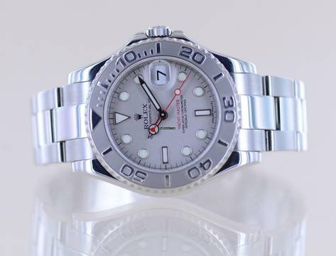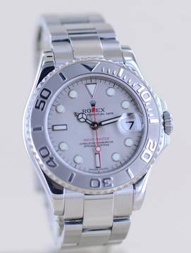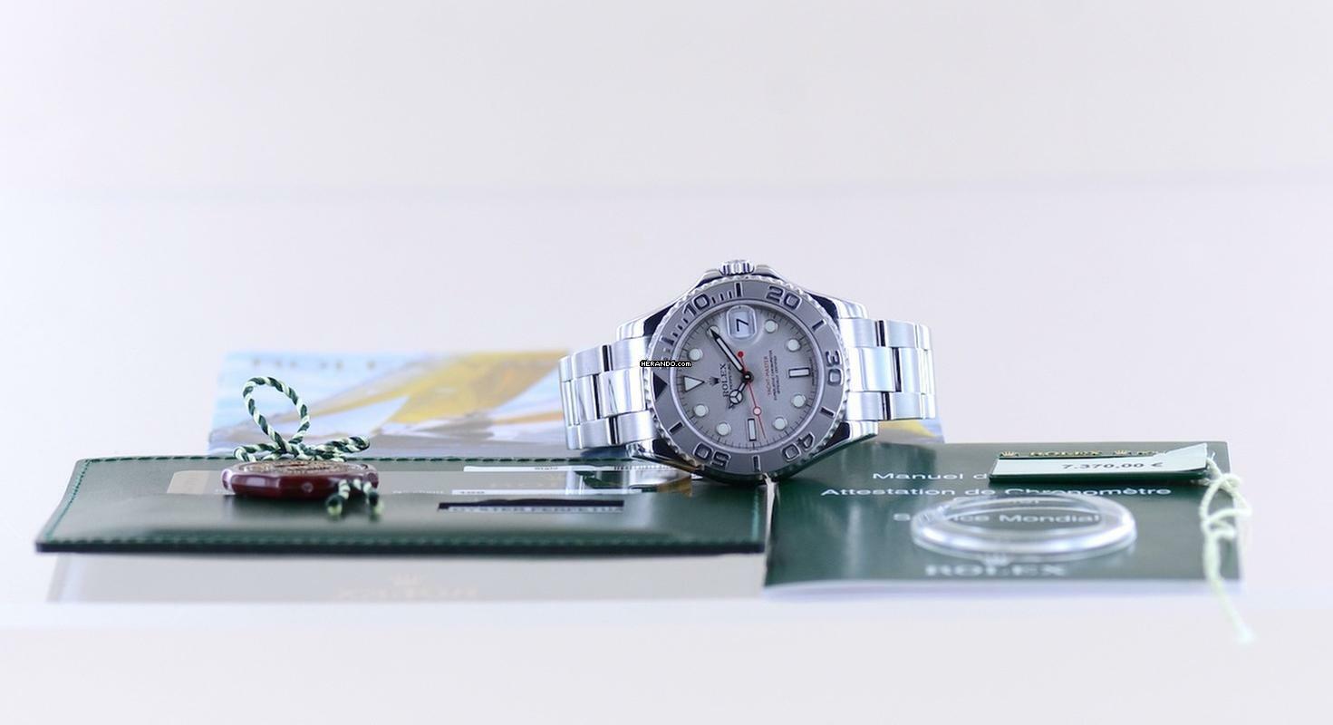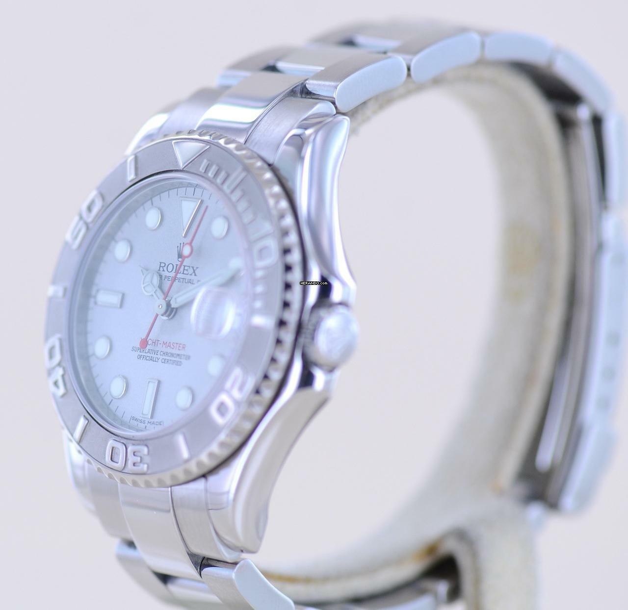 Schöne Rolex Yachtmaster Medium in Stahl Platin von 2010 mit der Referenz 168622. Die aus der G-Serie stammende Uhr hat das Super-Luminova-Zifferblatt sowie das massive Oysterband mit massiven Gehäuseantößen. Einfach ein wunderbarer Klassiker mit großem Wertsteigerungspotenzial. Die Yachtmaster gehört in jede gute Uhrensammlung, macht jedoch auch im Alltag eine super Figur und hält bei entsprechender Pflege ein Leben lang. Das klare Zifferblatt ist fernab von jedem Trend zeitlos schön und wird es auch immer bleiben. Es ist genau wie die Lünette aus massivem Platin und im Look absolut unverwechselbar.Ein schöner Nebeneffekt der Yachtmaster ist das Understatement. Das massive Band - wie bei der Daytona - und das eigene abgerundete Gehäuse mit dem hellen Platin passen nicht direkt in die landläufigen Rolexformen. Einfach genial luxuriös.
