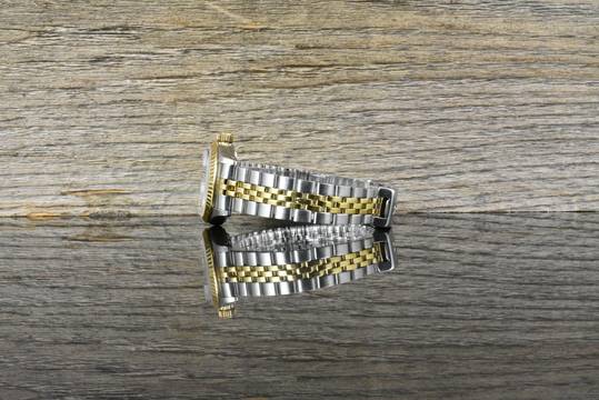 Gehäuse: schönes unpoliertes Stahl / Gold Gehäuse mit Tragespuren