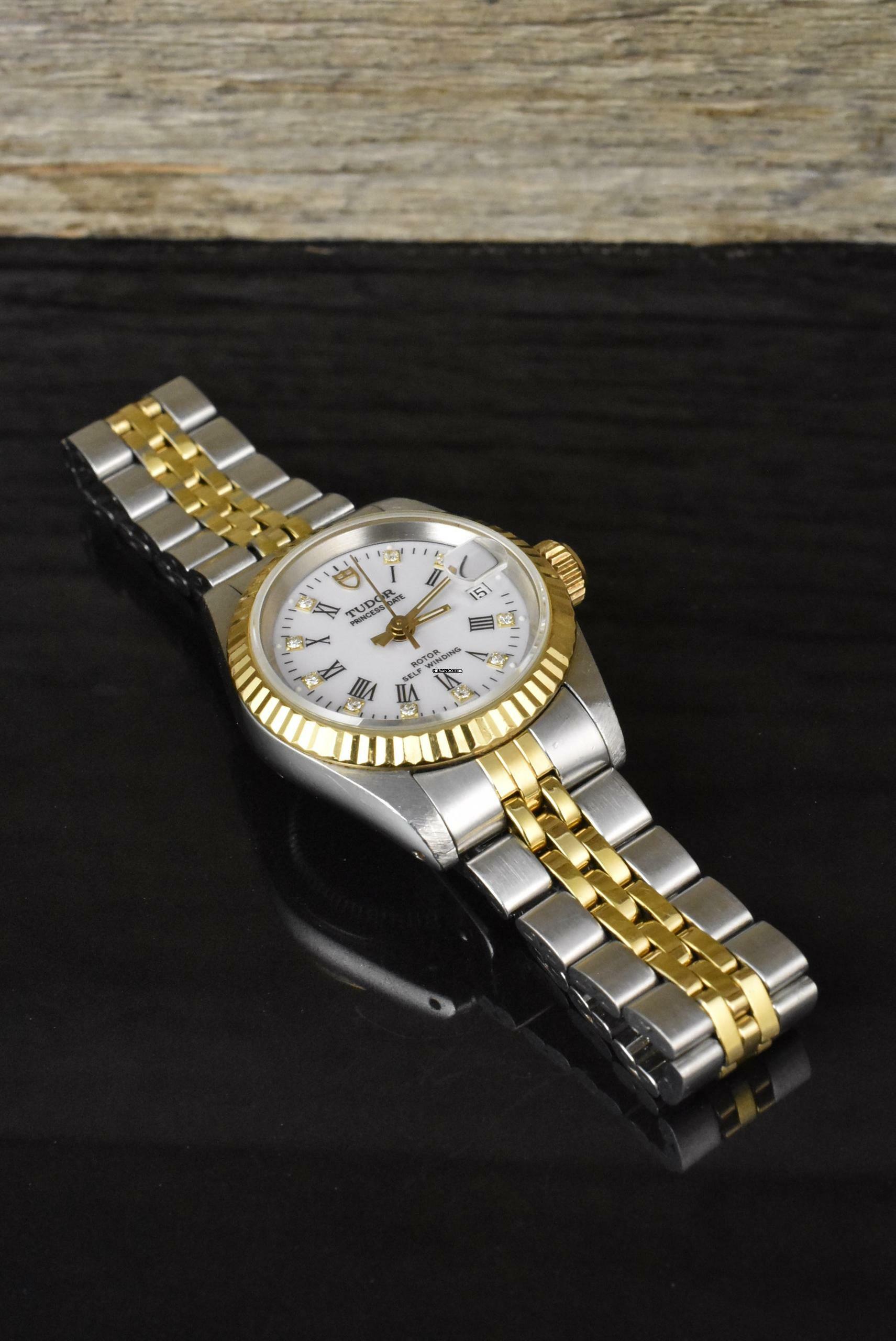 An alle Freunde des guten Geschmacks, angeboten wird eine unpolierte Tudor Princess Date 92413 in Stahl / Gold gefertigt mit einem sehr edlen weißen Diamant Ziffernblatt – aus ca. dem Jahr 1998!