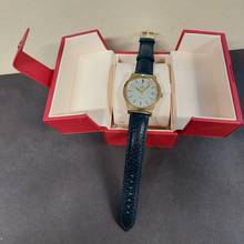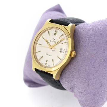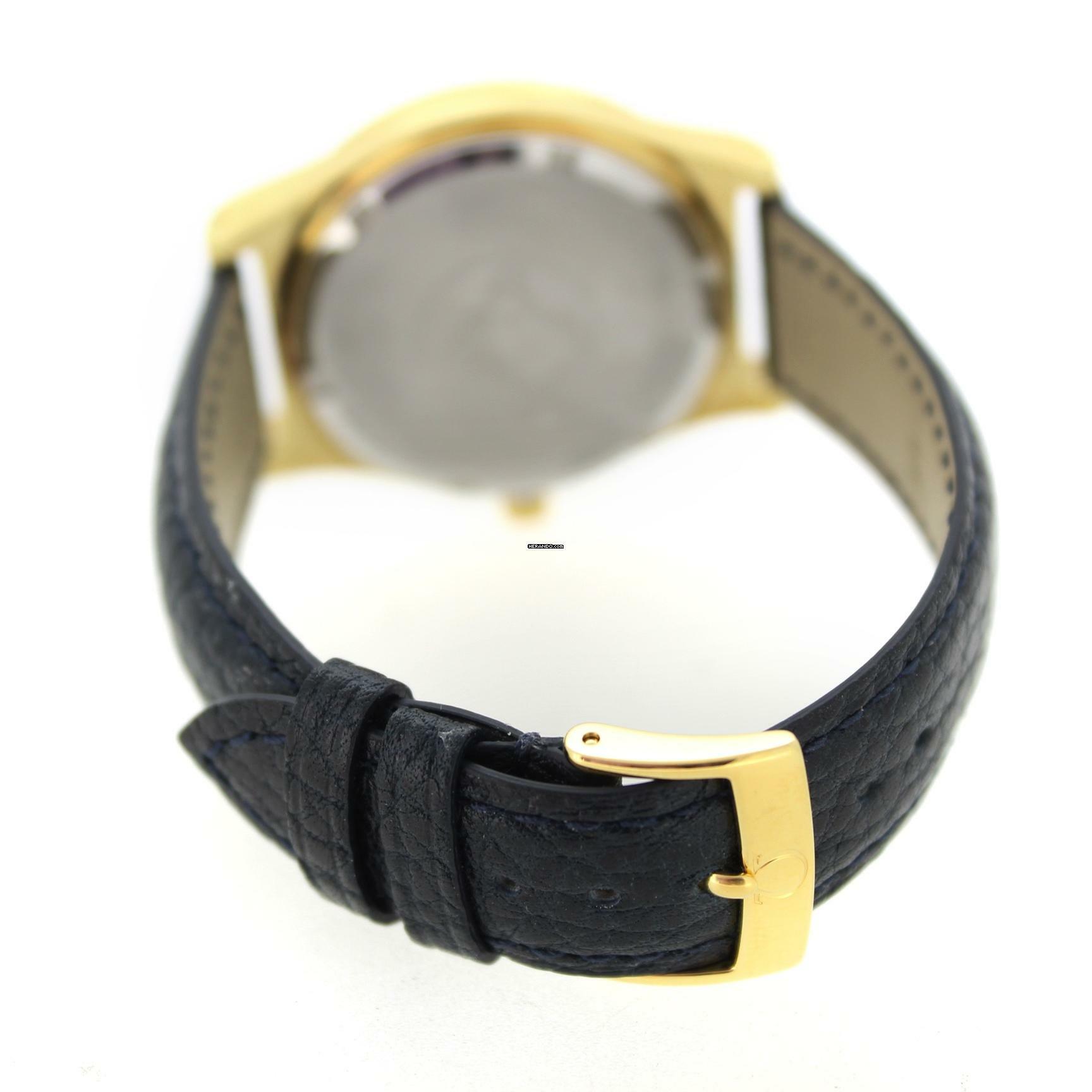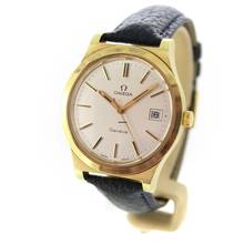 This Omega watch features a 36 mm steel case. The watch features a champagne color dial. The watch is equipped with a new black strap.