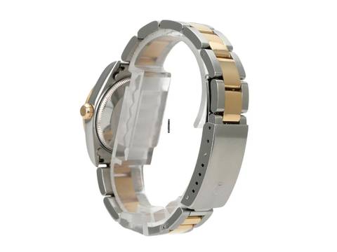 Gehäuse aus Edelstahl poliert und satiniert, Gehäusedurchmesser 31 mm, geriffelte Lünette aus 18 kt Gelbgold, Oyster Edelstahl / 18 kt Gelbgold Armband poliert und satiniert mit Faltschließe, Perlmutt Diamantzifferblatt, goldene Zeiger, Automatikwerk, Chronometer, Rolex Manufakturkaliber 2235 mit 31 Steine, 28.800 A/h, Datumsanzeige, verschraubte Krone aus 18 kt Gelbgold, kratzfestes Saphirglas, Edelstahlboden verschraubt, wasserdicht bis zu 10 bar.