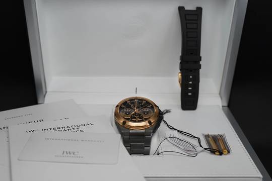Die Uhr befindet sich in einem nahezu ungetragenem Zustand und wird mit einem zusätzlichen Originalem IWC Titanband geliefert, das originale Kautschukband samt Rosegoldschließe ist selbstverständlich dabei, sowie die Werkzeuge zum selbstständigem Wechsel der Bänder.