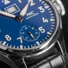 The watch features an impressive 46.2mm stainless-steel case, offering the commanding wrist presence that the Big Pilot family is known for. Its clean white lacquered dial, black Arabic numerals, and stark contrast ensure excellent legibility in all conditions. The defining feature—the big date display at 12 o’clock—adds both practicality and visual appeal, giving the piece a contemporary edge while staying rooted in pilot-watch tradition.
