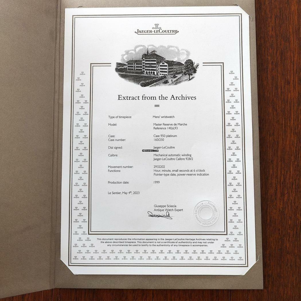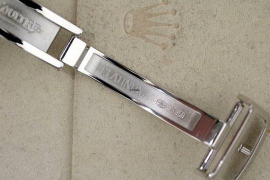 And again: Platinum for the price of steel: A JLC Reserve de Marche in platinum with platinum folding clasp. Limited Edition of 250 pcs, here is number 160. Watch was serviced 2024 and an extract from the archives was made. Ref is 140.6.93