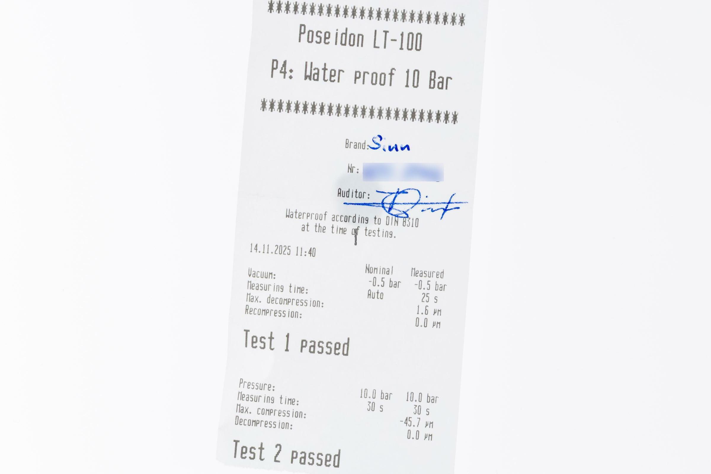 - Wasserdichtigkeit*: ja. Das Prüfprotokoll mit Prüfdruckangabe liegt bei.
