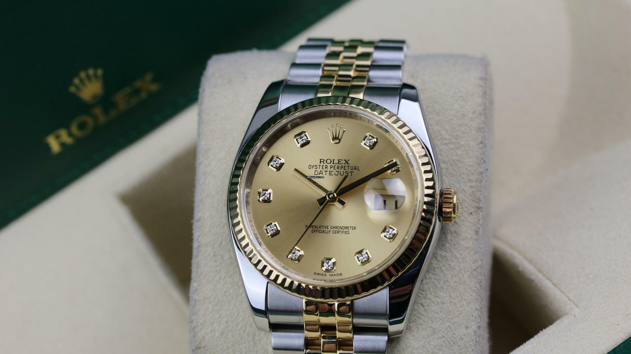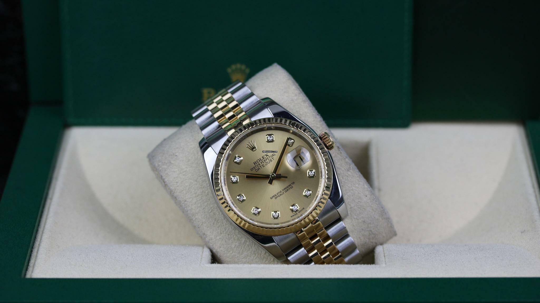 Rolex Datejust 36 Steel Gold - Champagne Diamond - like New - 06/2011
