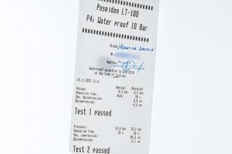 - Wasserdichtigkeit*: ja. Das Prüfprotokoll mit Prüfdruckangabe liegt bei.