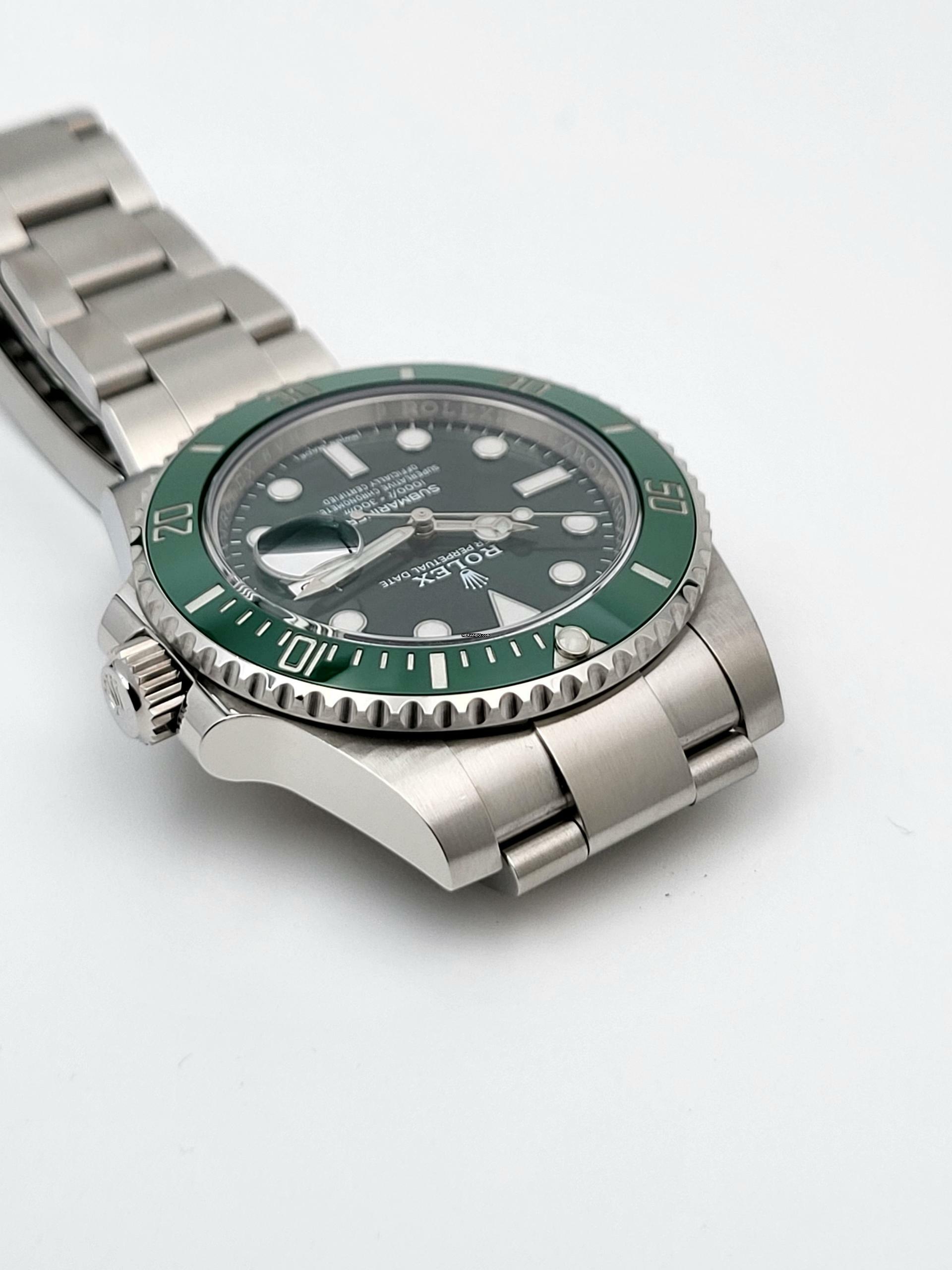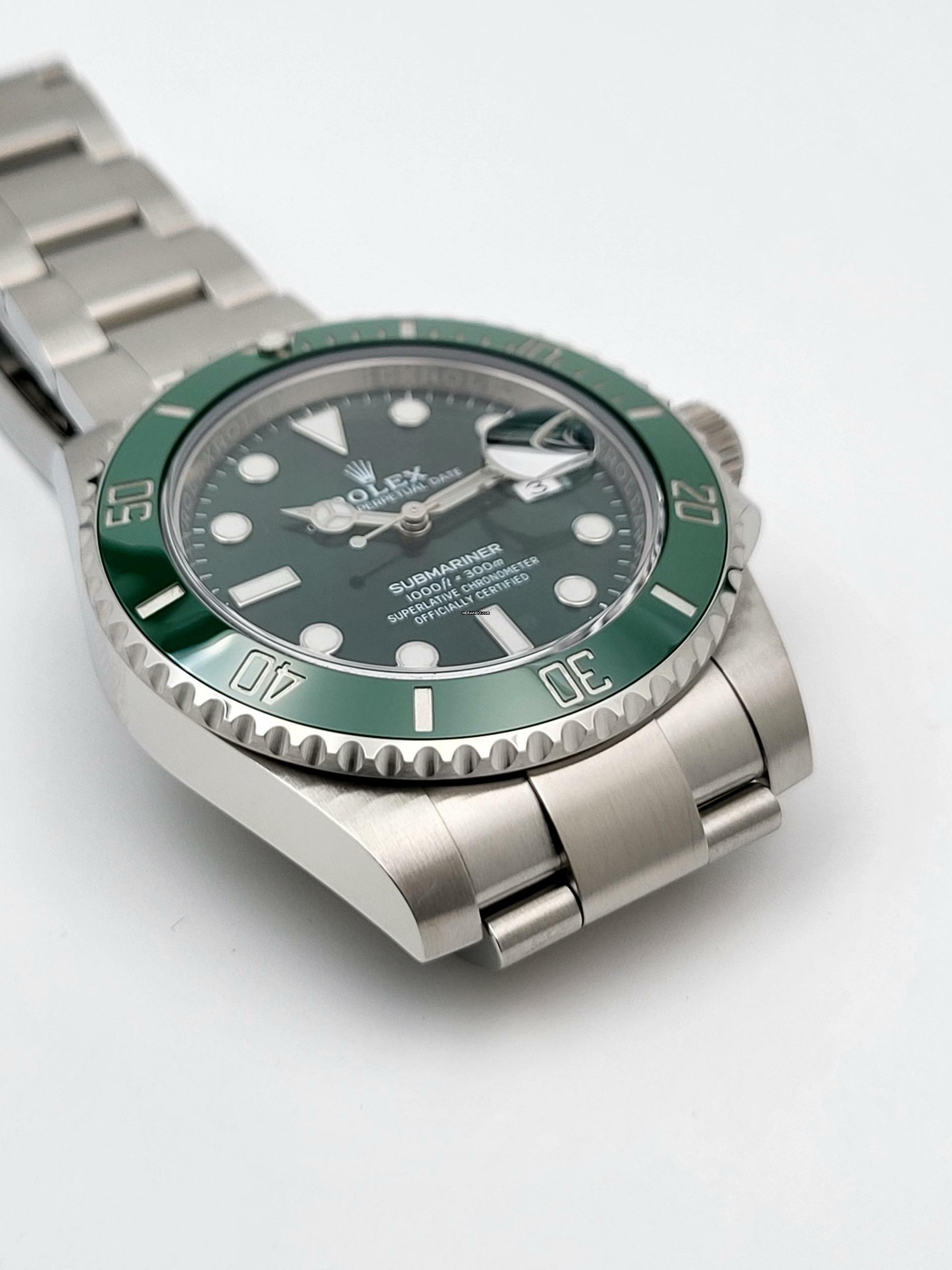 For sale is this nice Rolex Submariner Date Hulk 40 mm. steel with green dial and ceramuc bezel on Oyster-Bracelet.