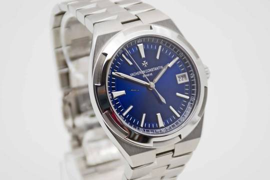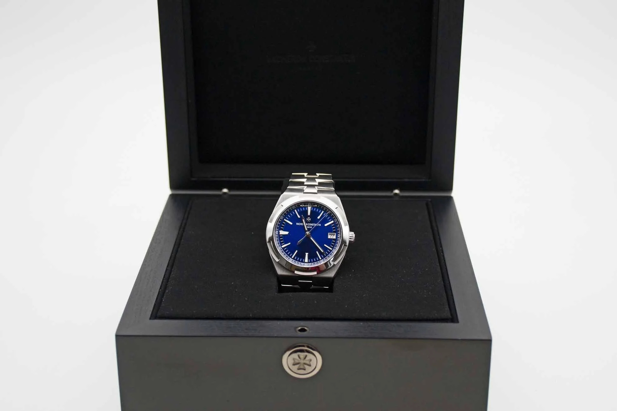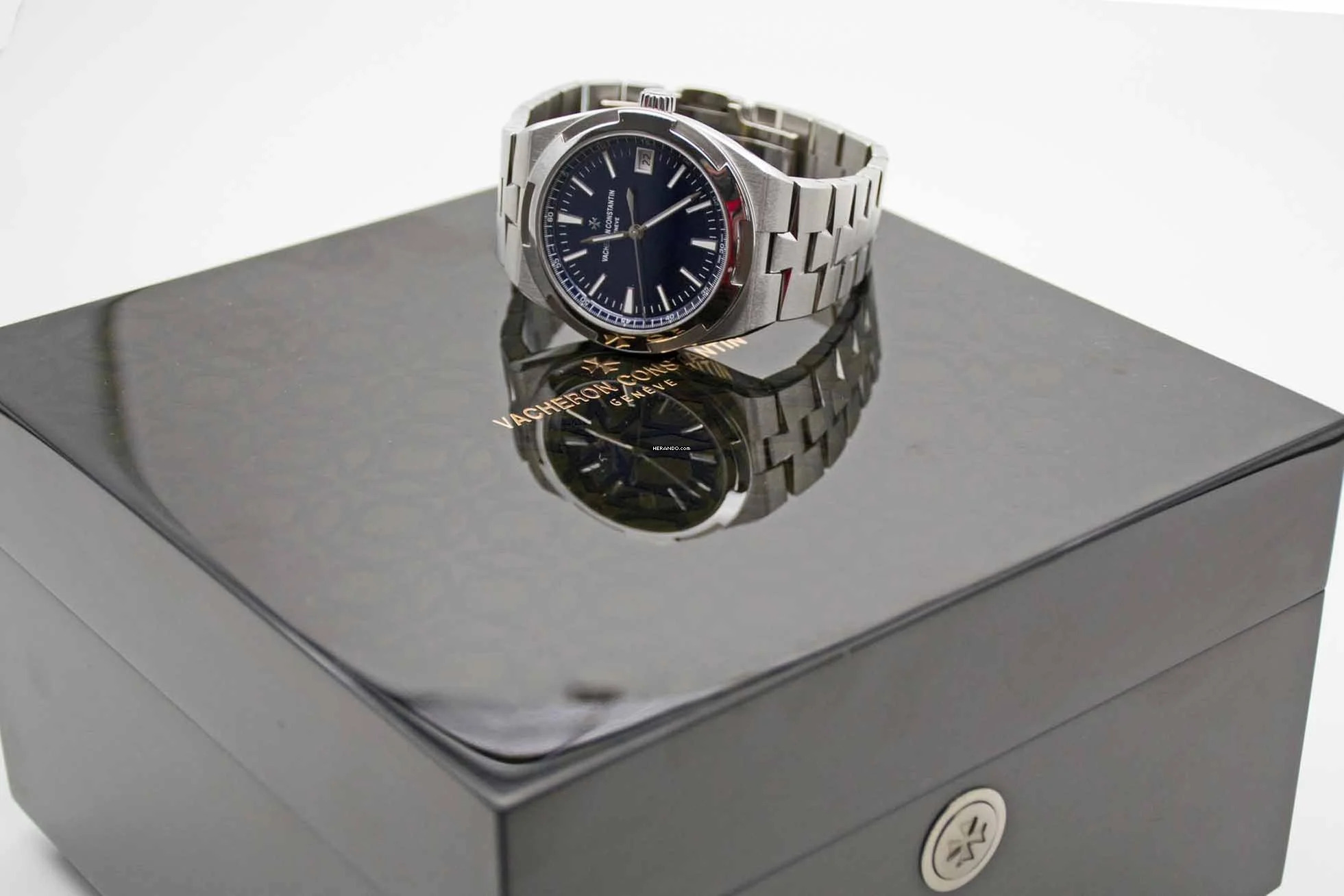 Overseas 4500V/110A-B128, 41 mm Gehäuse mit blauem Zifferblatt VC Edelstahl Armband mit Feinverstellung in voller Länge. Sehr elegante Sportuhr inVC Edelholzbox mit Umkarton, Staubbeutel, VC Krokoarmband, VC Kautschukarmband, passende Faltschließe, Hang Tag, Erstkaufrechnung der VC Boutique, Dokumenten Etui und Vacheron Constantin Garantie Zertifikat aus 2018. Dieses Fullst befindet sich in perfektem und neuwertigem Zustand. Inzahlungnahmen sind nur in unserem Geschäft möglich. Overseas 4500V/110A-B128, 41 mm case with blue dial and Vacheron Constantin steel bracelet with micro adjustment function in full length. Very comfortable sports watch in VC wooden box with outer box and dust cover, VC alligator strap, blue VC rubber strap, VC folding clasp, original bill of sale, document folder, hang tag with matching case no. and Vacheron Constantin warranty certificate from 2018. Perfect Overseas fullset in mint condition from a collector. Trades are possible if you deal withus directly. Please contact us for a quote.