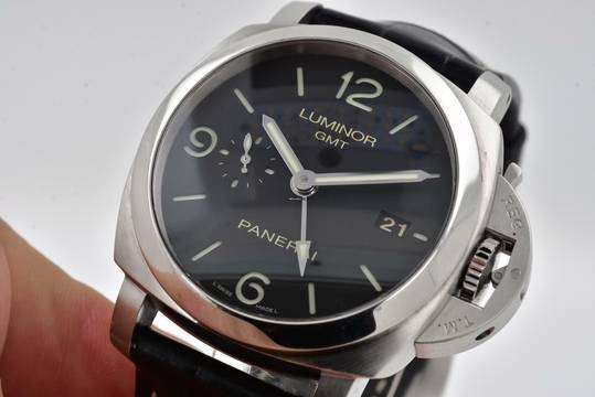 Movement: Panerai automatic, Hour, Minute and small Second Hands, date, GMT