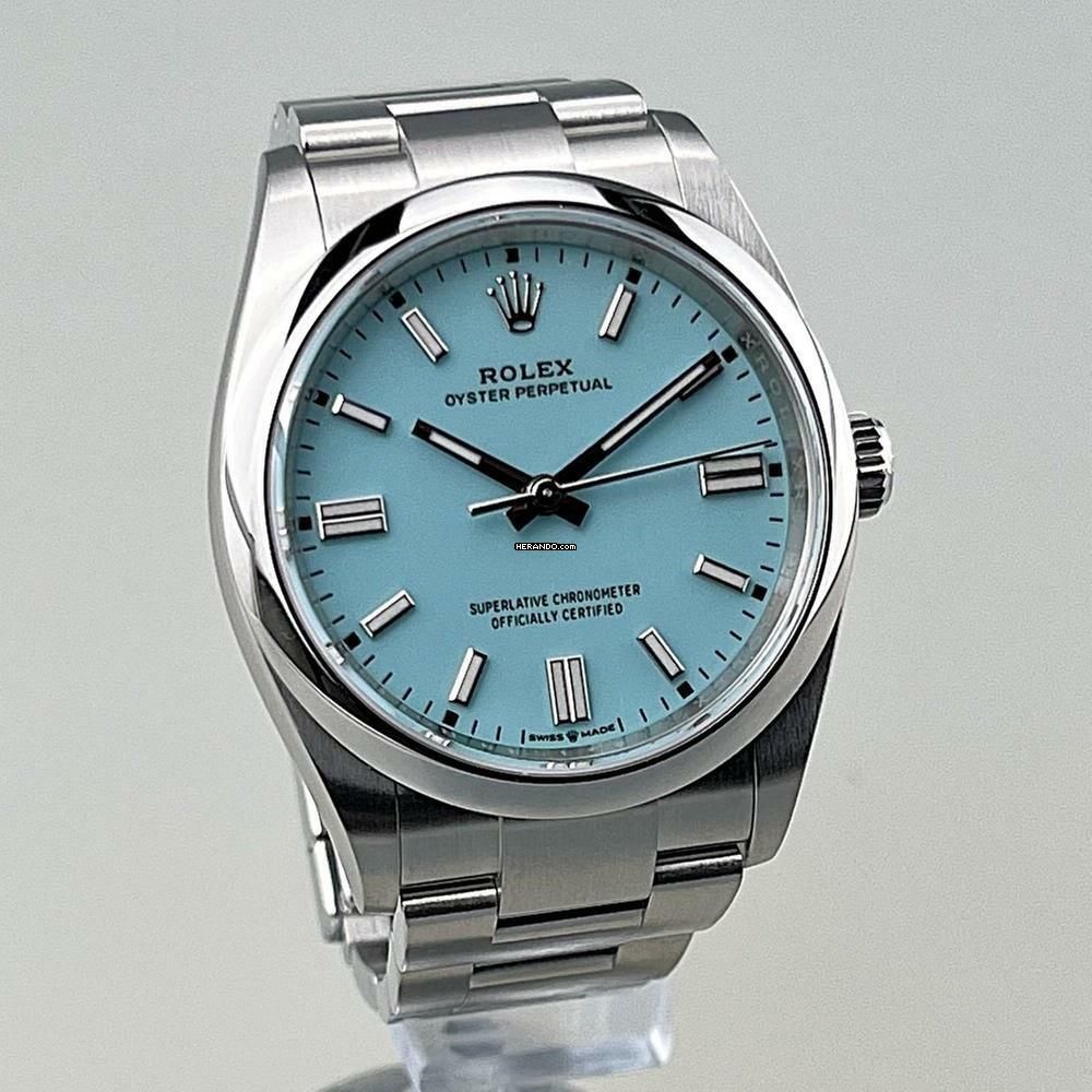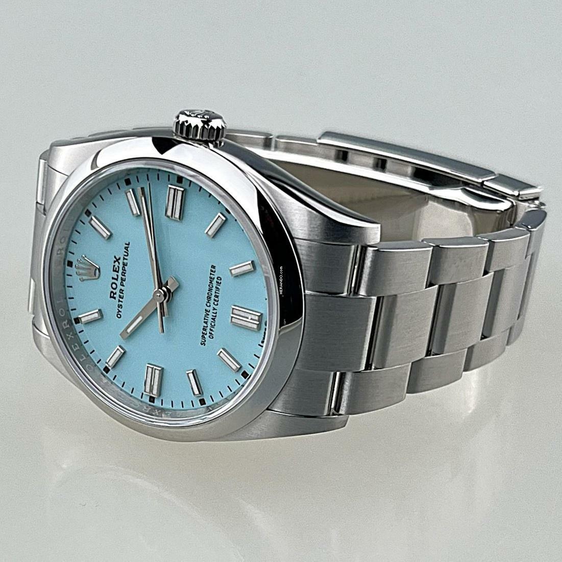 Rolex Oyster Perpetual 36 Zifferblatt türkis blau Tiffany dial Index Oysterarmband Full Set EK 10/2025 deutsche Auslieferung