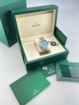 Es handelt sich um ein absolut neues/ungetragenes Exemplar. Diese Rolex Oyster Perpetual mit einem Gehäusedurchmesser von 36 mm wurde ursprünglich von einem Konzessionär aus Deutschland ausgeliefert
