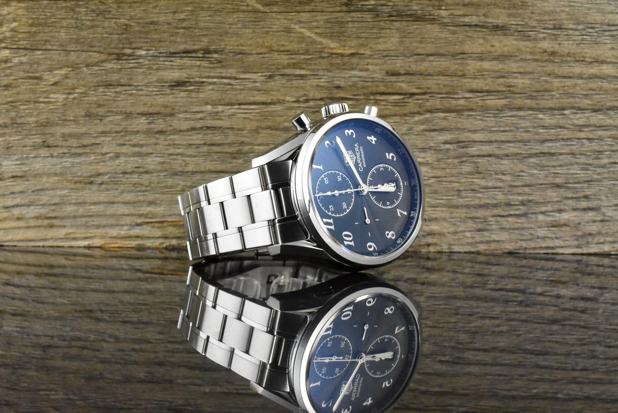 IKAN hier gibt es die Uhr, an alle Freunde des guten Geschmacks! Angeboten wird ein schöner TAG Heuer Carrera Calibre 16 41 Heritage Chronograph Referenz CAS2110.BA0730 in Stahl mit einem schwarzen Ziffernblatt aus ca. dem Jahr 2015!