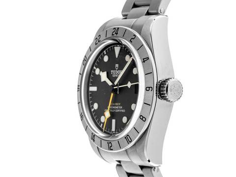 Tudor Black Bay Pro Stahl Automatik Armband Stahl Gehäuse Edelstahl poliert und satiniert, Gehäusedurchmesser ohne Krone 39mm, Gehäusehöhe 14,6mm. Lünette Edelstahl satiniert mit gravierter 24-Stunden Skala. Armband Edelstahl poliert und satiniert, Sicherheitsfaltschließe Edelstahl mit Hersteller-Logo. Zifferblatt schwarz matt mit aufgesetzten Leuchtindexen und Leuchtzeigern. Uhrwerk Automatik, Manufakturkaliber MT5652, Gangreserve ca. 70 Stunden. Anzeige von Stunde, Minute und Sekunde über Zeiger aus der Mitte mit Sekundenstopp zur sekundengenauen Einstellung der Uhrzeit, Datumsanzeige mit Schnellverstellung bei 3 Uhr, zweite Zeitzone (GMT) ablesbar über einen eckigen gelben "Snowflake" Zeiger. Saphirglas kratzfest. Krone verschraubbar mit Hersteller-Logo. Boden Edelstahl verschraubt und graviert. Gewicht der Uhr inklusive Armband 163g, Länge des Armbandes inklusive Gehäuse 185mm. Wasserdicht bis 20 ATM. Referenznummer: M79470-0001, Gehäusenummer: F316XXX, ID: KR156642000725H-4370, Artikelnummer: 10000081750. Original Tudor Box mit Umkarton und Garantie Papiere von Juni 2023 sowie Beschreibung und Watchregister Auszug von Juli 2025, The Watch Register Zertifikat / ohne Eintrag (Internationale Datenbank für verlorene oder gestohlene Uhren), Full Set. Wie Neu. Lieferzeit sofort. Inklusive certified pre owned Zertifikat / Uhrenpass mit einem Farbbild, der genauen Beschreibung sowie dem Wiederbeschaffungswert der Uhr über 4370,-€ und 1000 Tage Garantie ab Kaufdatum.
