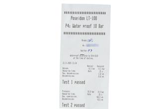 - Wasserdichtigkeit*: ja. Das Prüfprotokoll mit Prüfdruckangabe liegt bei.