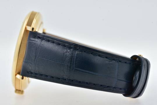 Case: 18k yellow gold, diameter: appox. 40 mm, thickness: approx. 10 mm, sapphire crystal