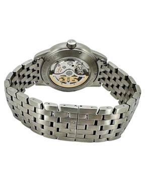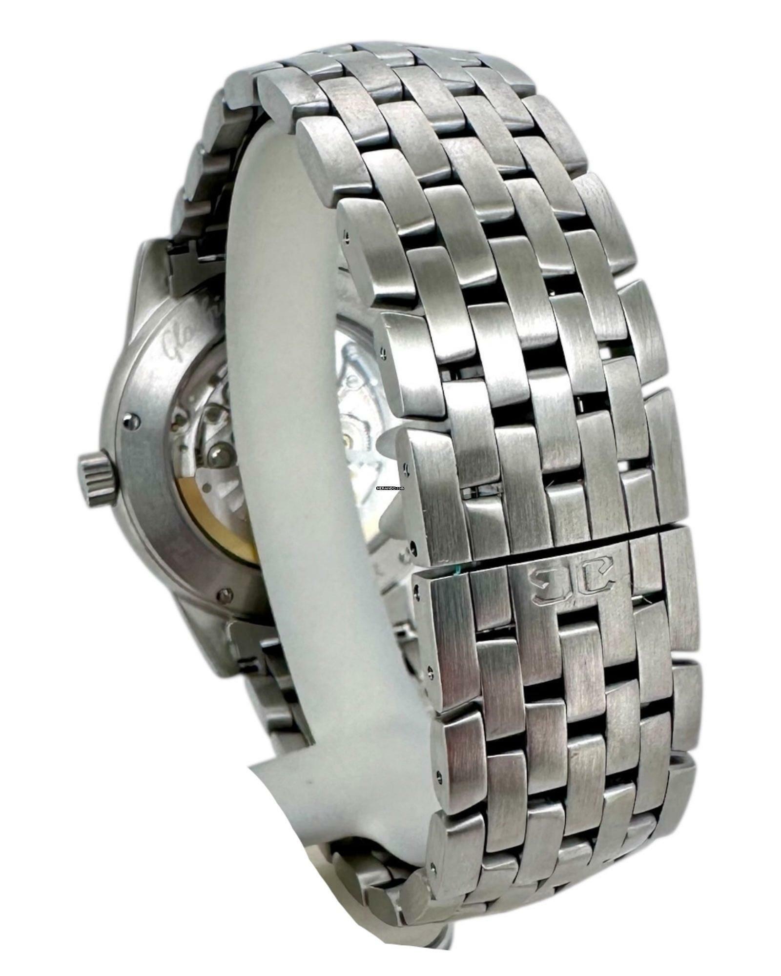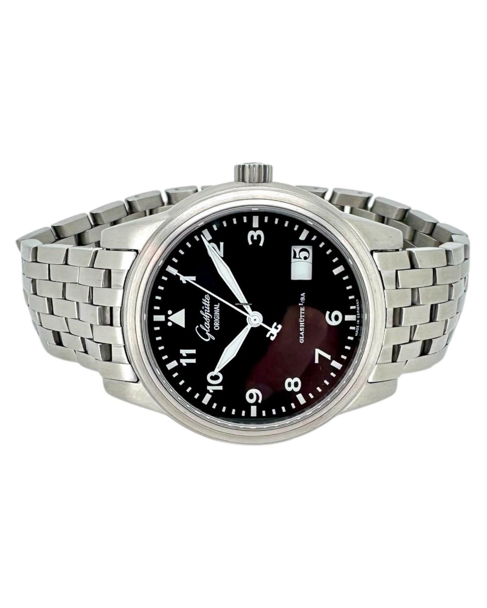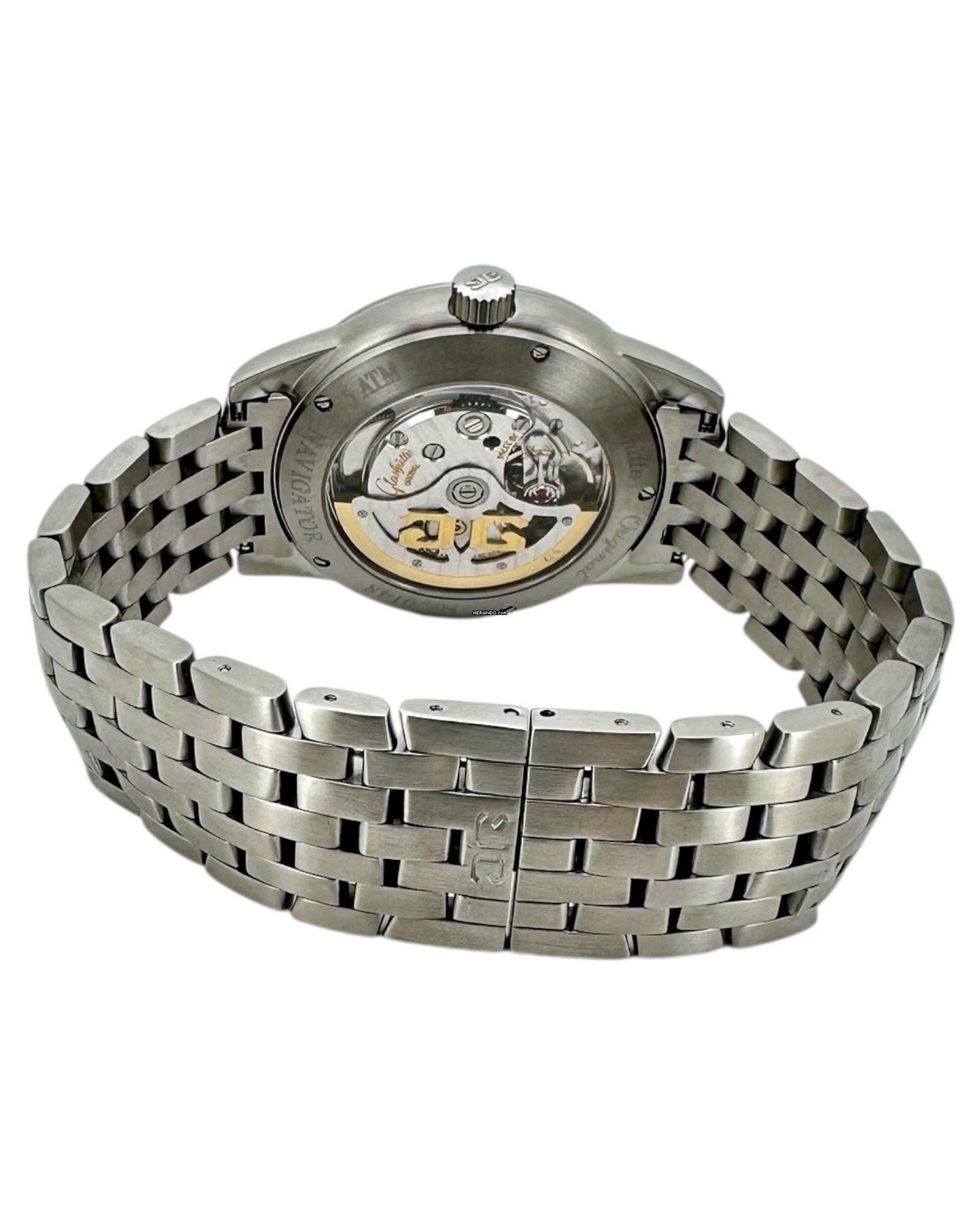 Glashütte Original Senator Navigator Ref. 39-42-07-12-04 – Präzision mit Panoramadatum und 21k GoldrotorDie Glashütte Original Senator Navigator Ref. 39-42-07-12-04 vereint traditionelle deutsche Uhrmacherkunst mit markantem, funktionalem Design. Ihr schwarzes Zifferblatt mit klaren arabischen Ziffern sorgt für perfekte Ablesbarkeit, während das charakteristische Panoramadatum bei 4 Uhr die Uhr optisch wie technisch hervorhebt.Angetrieben wird dieses Modell vom präzisen Manufakturkaliber 39, ausgestattet mit einem eindrucksvollen 21k Goldrotor, der durch den Saphirglasboden sichtbar wird. Diese hochwertige Schwungmasse gewährleistet optimale Aufzugsleistung und unterstreicht die luxuriöse Verarbeitung.Das robuste Edelstahlgehäuse und das elegante Stahlband machen die Senator Navigator zu einem vielseitigen Begleiter – sportlich, klassisch und zugleich äußerst hochwertig. Die Kombination aus feinster Mechanik, Funktionalität und deutschem Ingenieursgeist macht die Glashütte Original Navigator Senator 39-42-07-12-04 zu einer gefragten Uhr für Liebhaber echter Manufakturqualität.