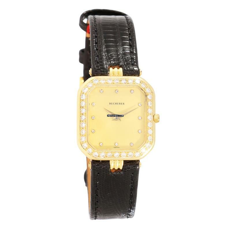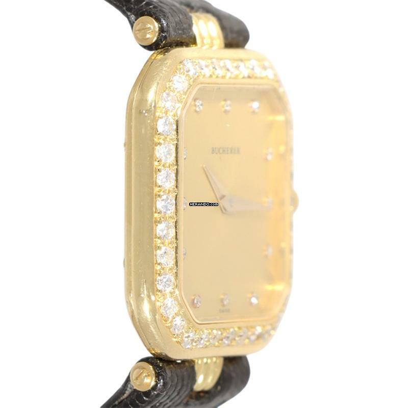 BUCHERER Damenarmbanduhr mit Diamantzifferblatt und Brillantlünette Quarz aus 750 Gelbgold mit Lederband BUCHERER Damenarmbanduhr mit Diamantzifferblatt und Brillantlünette Quarz aus 750 Gelbgold mit Lederband